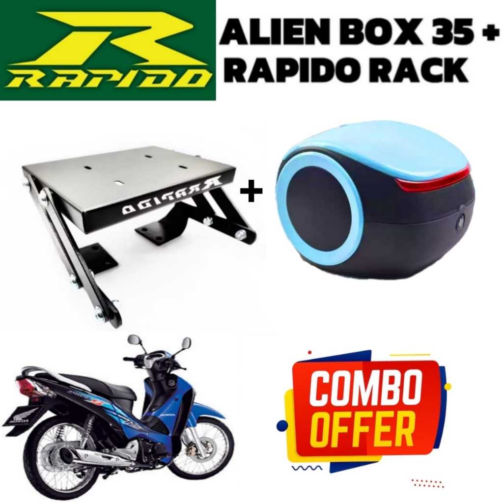 BOX ALIEN / BOX SIPUT 35L ABS + MONORACK RAPIDO HONDA WAVE 125S COMBO SET BOX ALIEN + RACK LIPAT WAVE 125 ACCESSOIRES