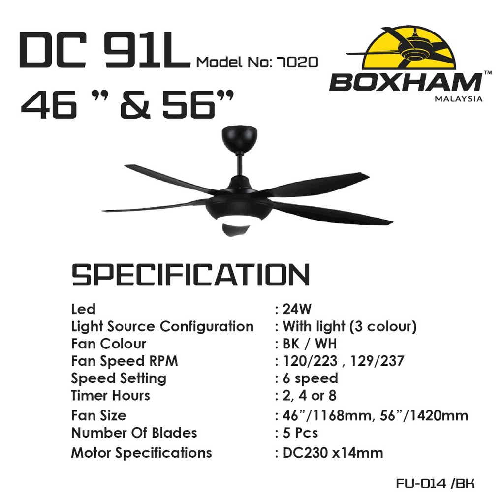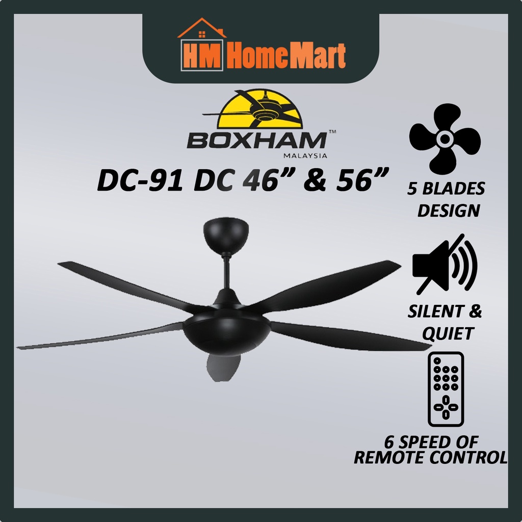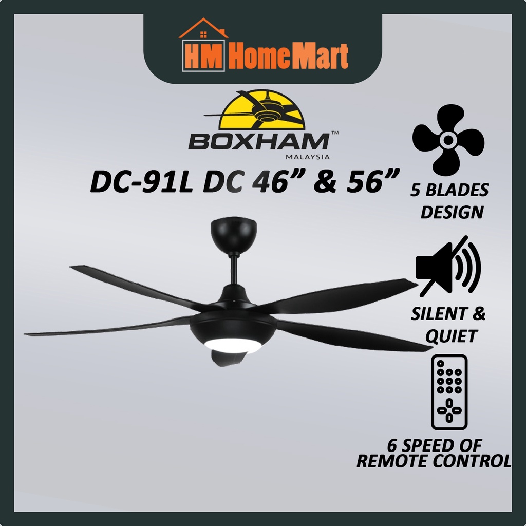 BOXHAM DC-91 46" & 56" DC Motor Remote Ceiling Fan With/Without LED (Black/White) (5 Years Warranty)