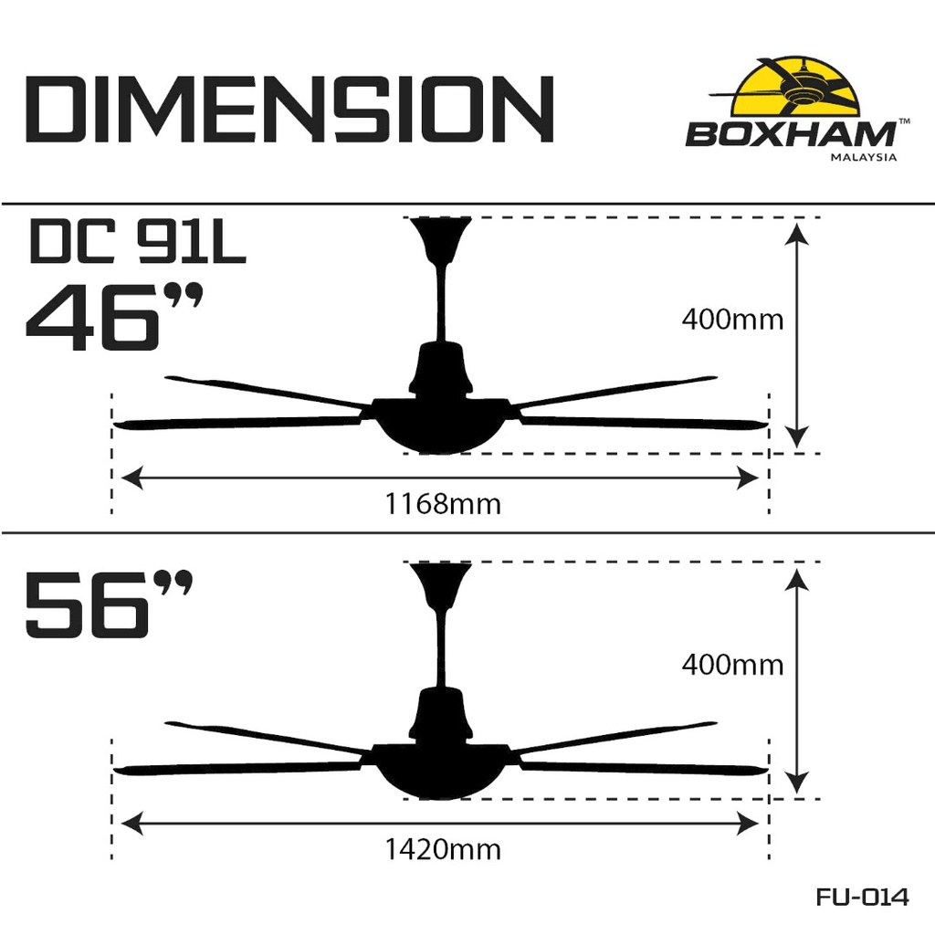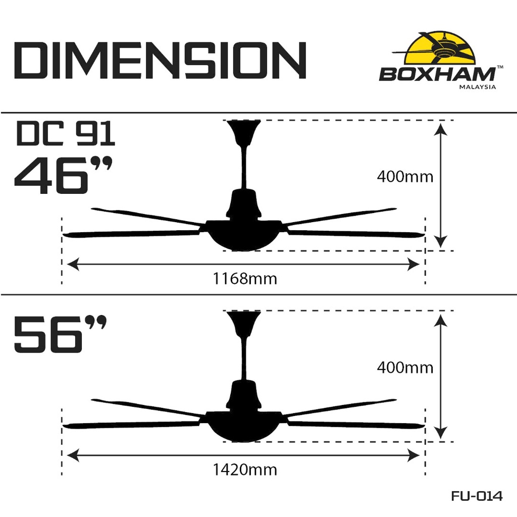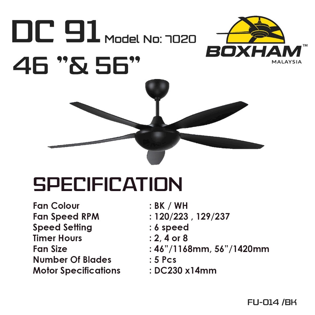 BOXHAM DC-91 46" & 56" DC Motor Remote Ceiling Fan With/Without LED (Black/White) (5 Years Warranty)