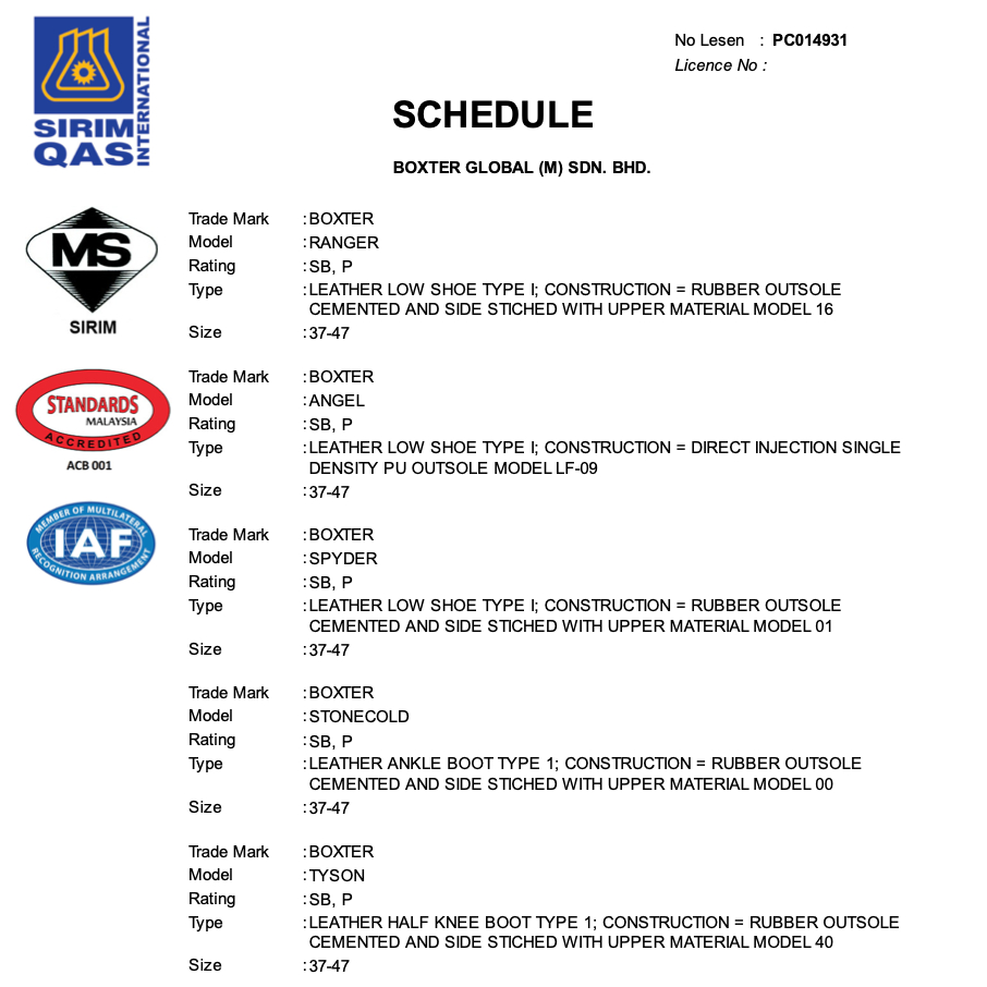 Boxter Tyson Safety Shoes Kasut Keselamatan Unisex Lightweight SIRIM CE Standard Water Resistant Safety Boots In Black