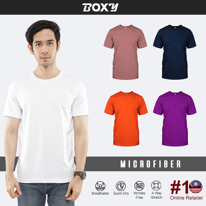 BOXY Unisex Microfiber Round Neck Plain Navy/Rosewood/Purple/Orange/White XS-3XL Short Sleeve T-Shirt | Baju Kemeja