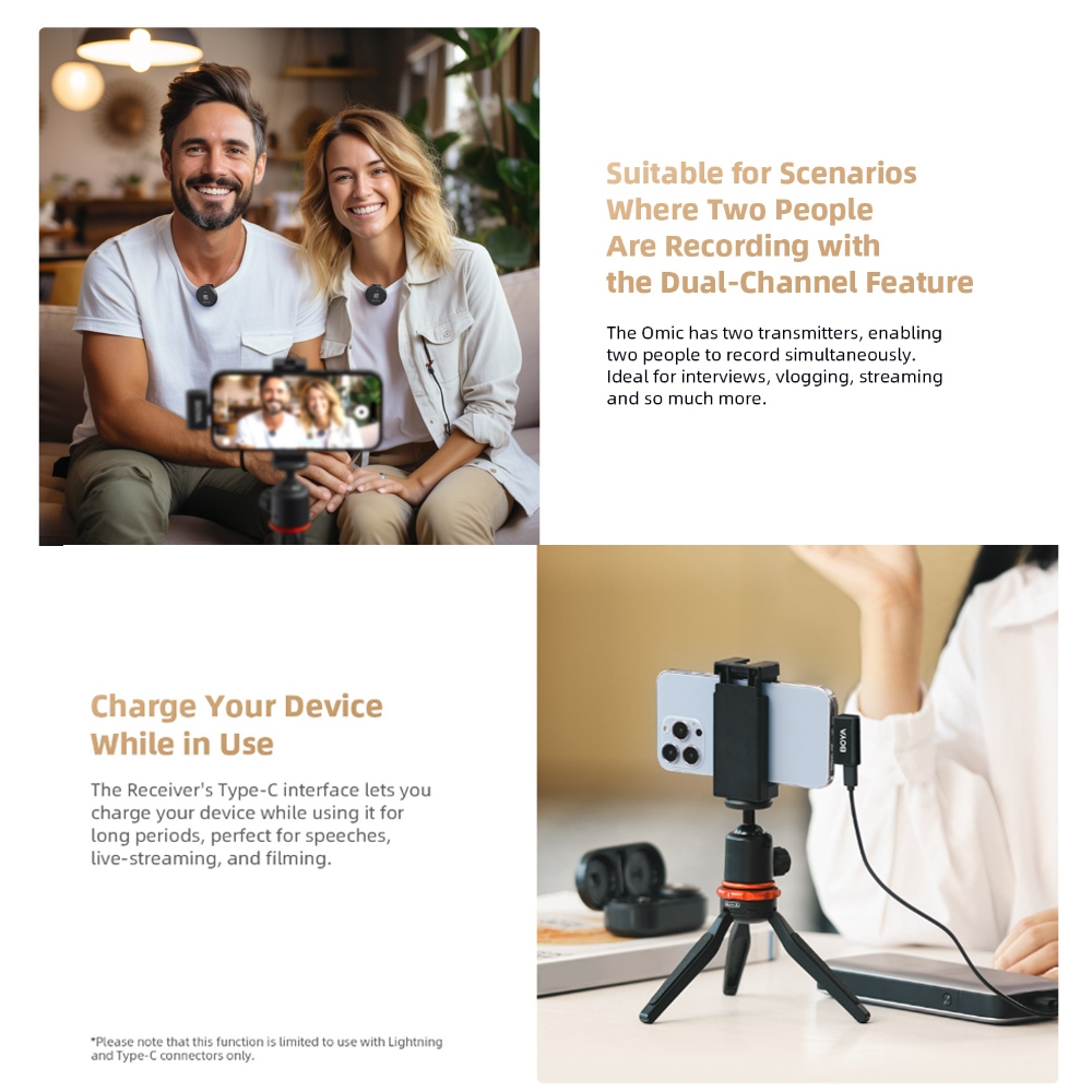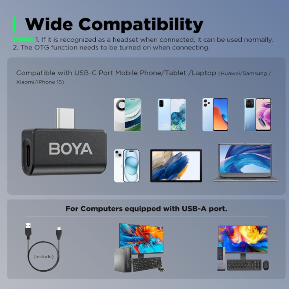 BOYA OMIC-U / OMIC-D Wireless Mic for Type C phone / I@s phone 2.4GHZ Dual Wireless Mic Phone Smartphone Mic