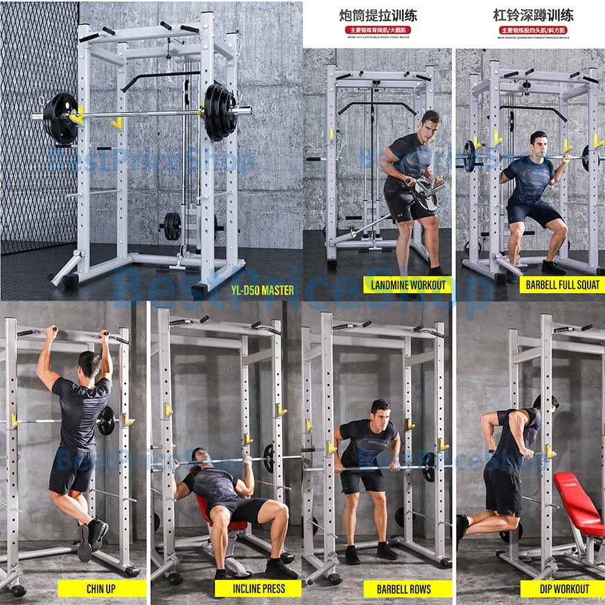 BPS FREE INSTALL Multi Function Smith Machine Pull Lat Squat Rack Chin Up Tower Station Pull Up Dip D50 Master