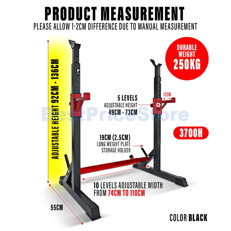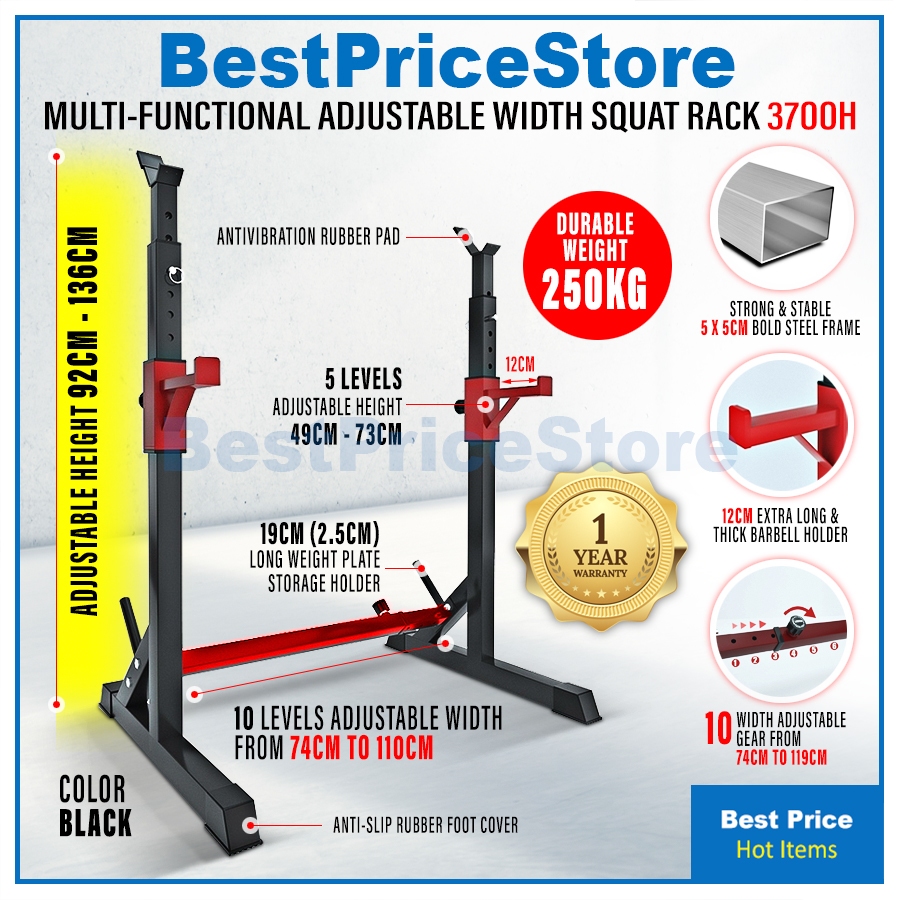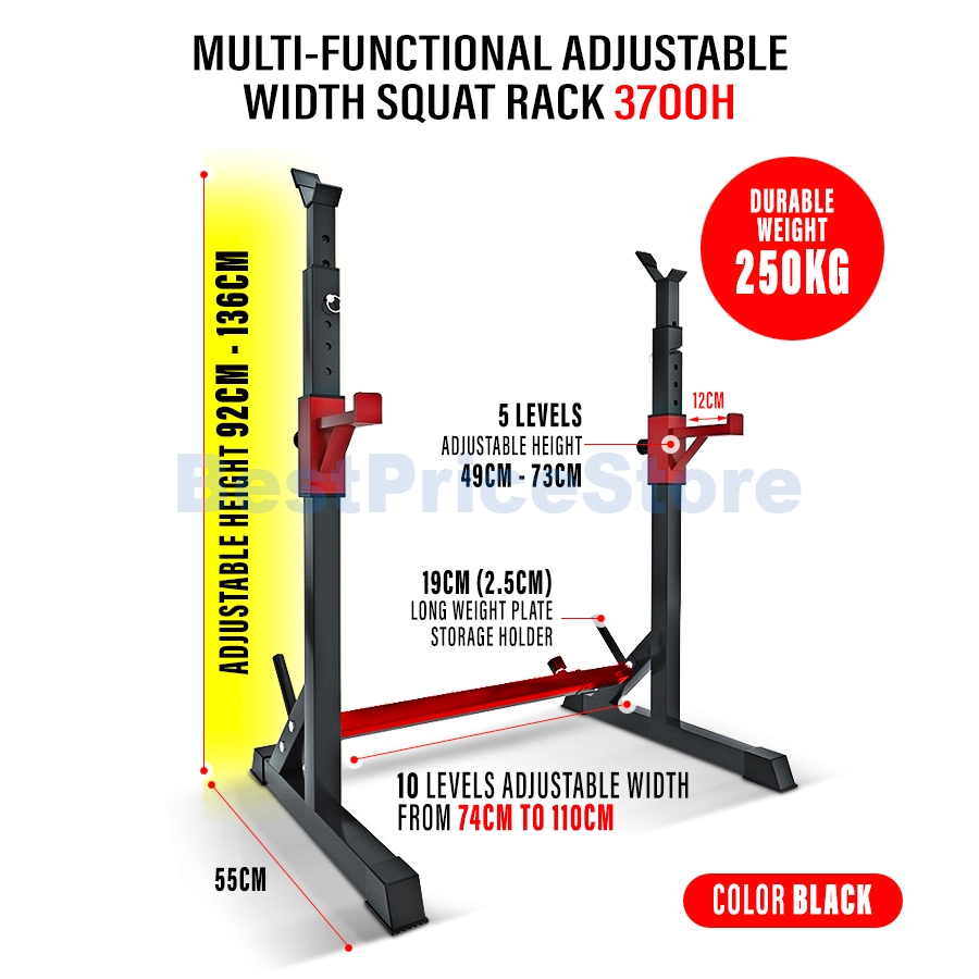 BPS Promo Squat Rack Adjustable Width 250kg Heavy Duty Weightlifting Barbell Rack Stand Dip Station Weight Bench SR3700H