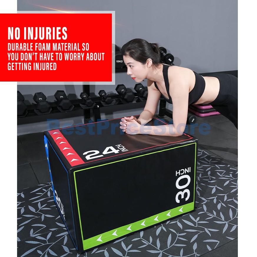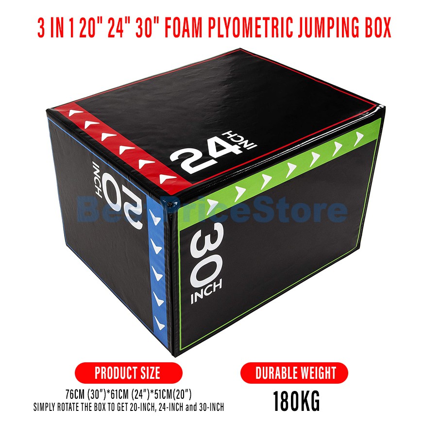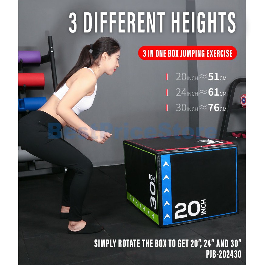 BPS 3in1 20" 24" 30" Foam Plyometric Jump Box Exercise Simply Rotate the Box Fitness Box Gym Training PJB-202430