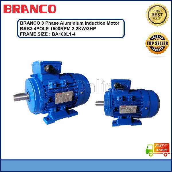 BRANCO ALUMINIUM MOTOR BA-B3 SERIES FOOT MOUNTED, 3HP/2.2KW 4POLE ~ 1400RPM 3PHASE 415V ), (BAB3-4Px3HP)