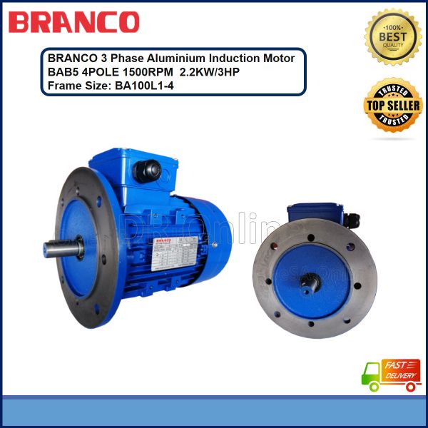 BRANCO ALUMINIUM MOTOR FLANGE MOUNTED BA-B5 SERIES 2.2KW/3HP 4 POLE ~ 1400RPM 3PHASE 415V (BAB5-4Px3HP)