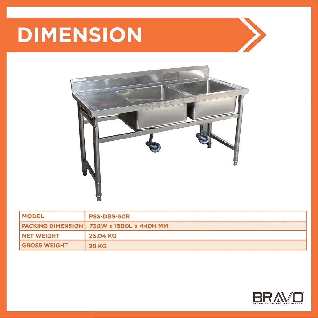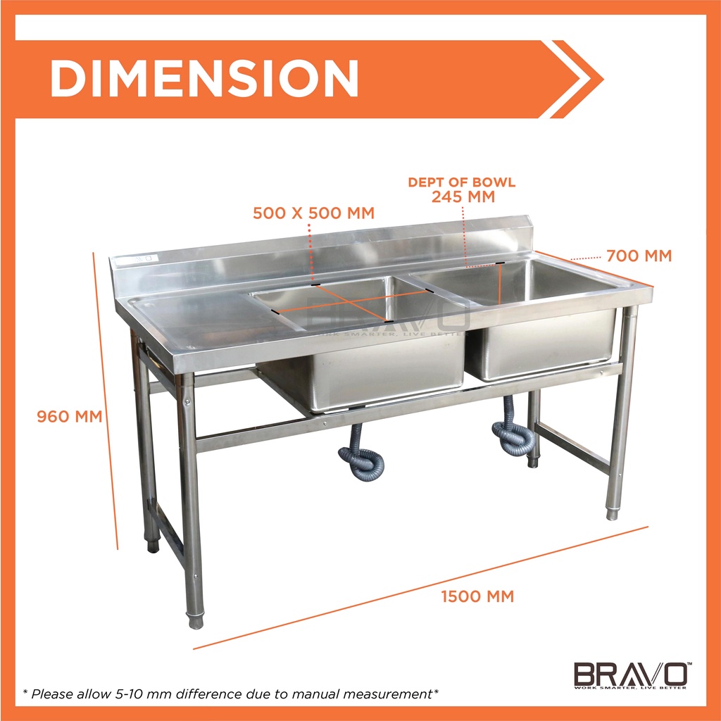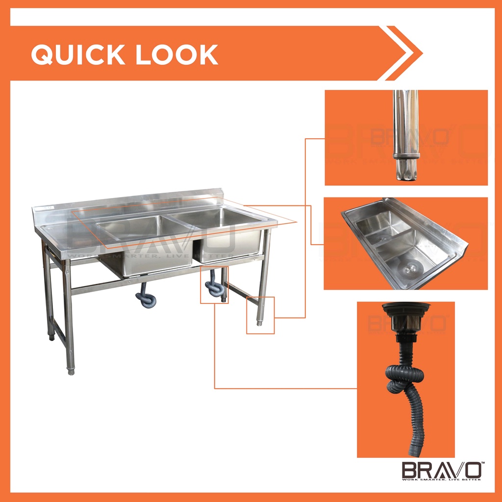 BRAVO Kitchen Sink Sinki Dapur Stainless Steel Kitchen Table with Rack Sink Stainless Steel Double Sink Stainless Steel