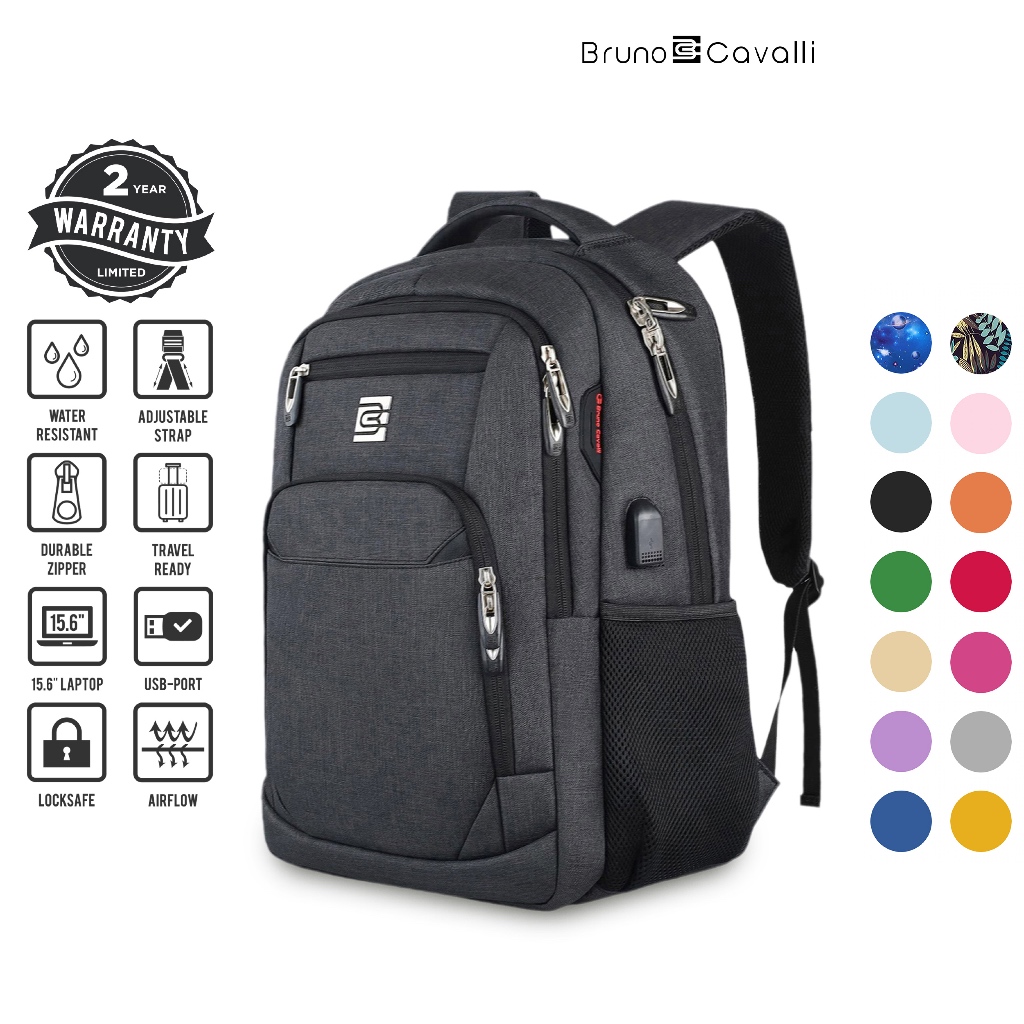 BRUNO CAVALLI Multifunctional Water Resistant 18" Laptop Backpack w USB Charging Port BN09-BN8689-18