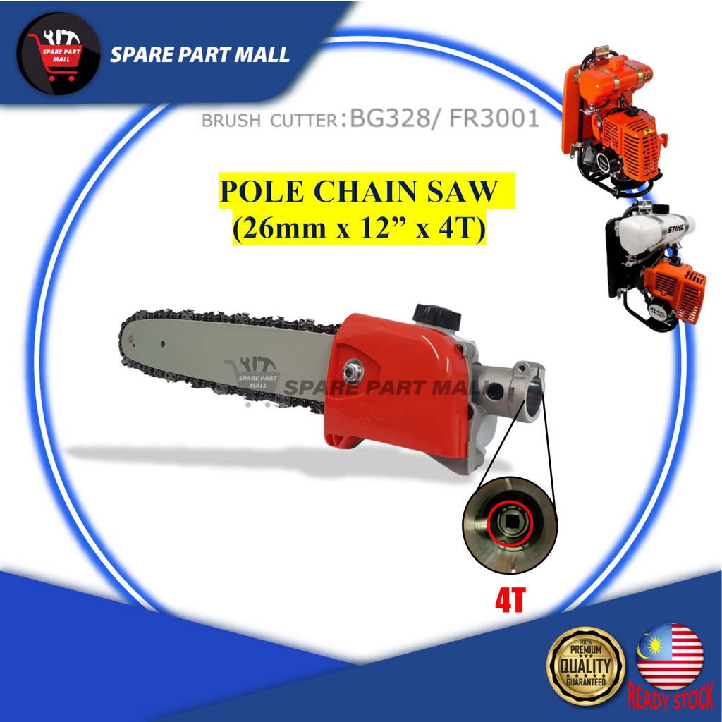 BRUSH CUTTER POLE CHAIN SAW 4T 7T 9T SPLINE 12" GUIDE BAR CHAIN ATTACHMENT TOOL PARTS EXTENSION HEAD ASSEMBLY