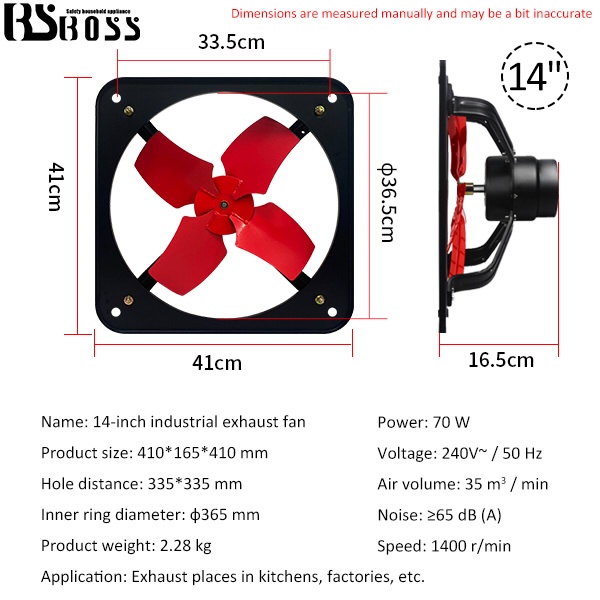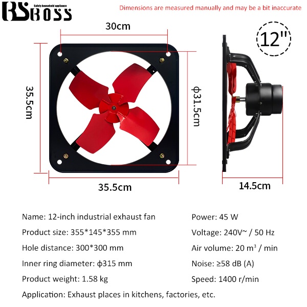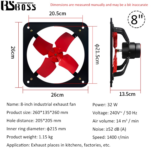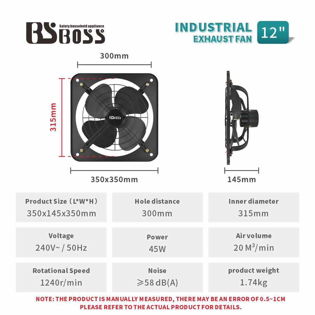 BS BOSS exhaust fan 8-24 inch Wall Type Light Duty Industrial kitchen ventilation fan kipas ekzos