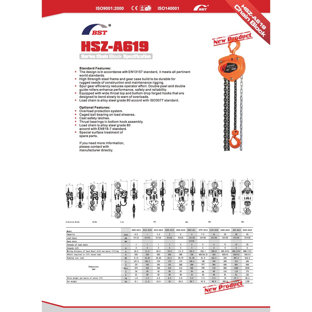 BST BRAND KOREA HSZ-A619 Type Manual Chain Block(Heavy Duty)FROM 0.5TON -30TON
