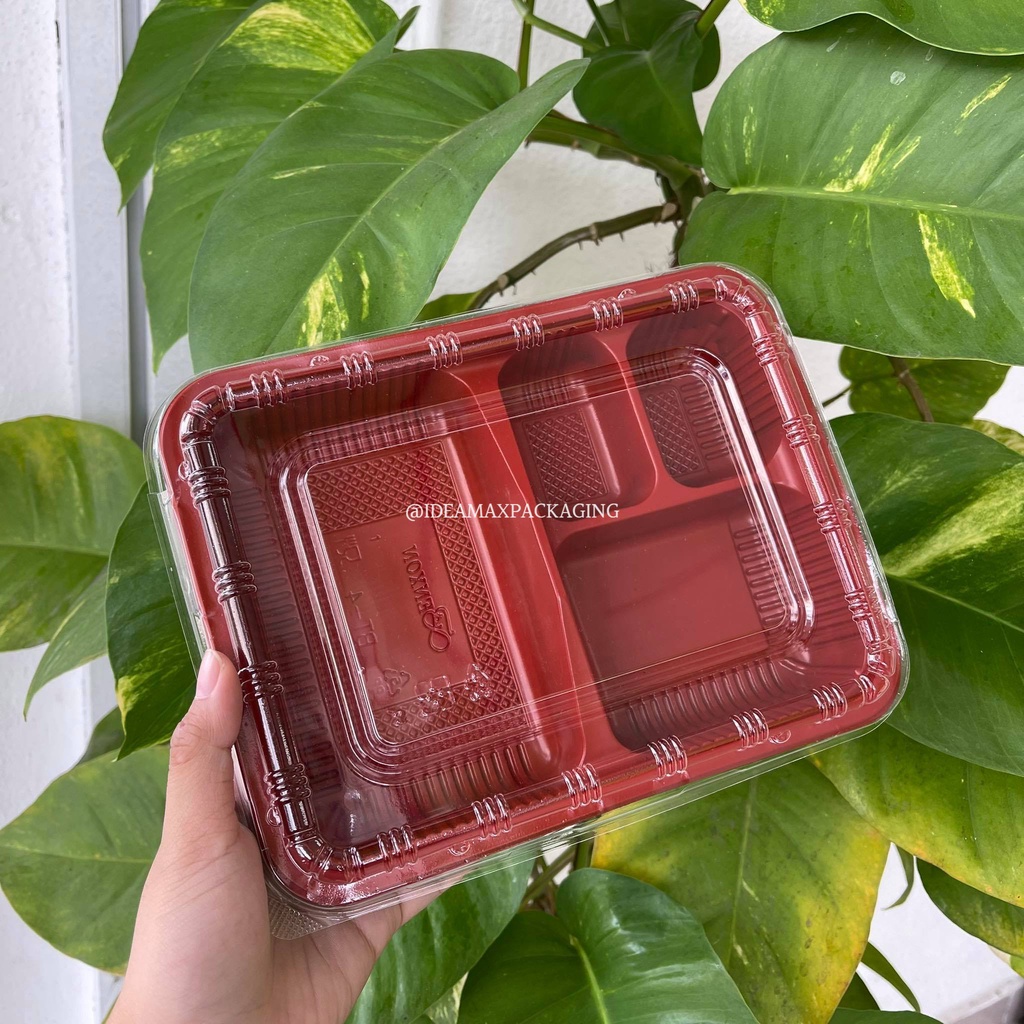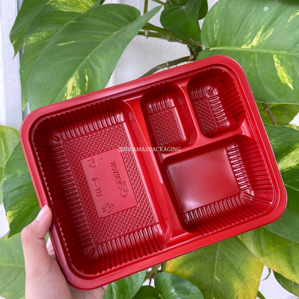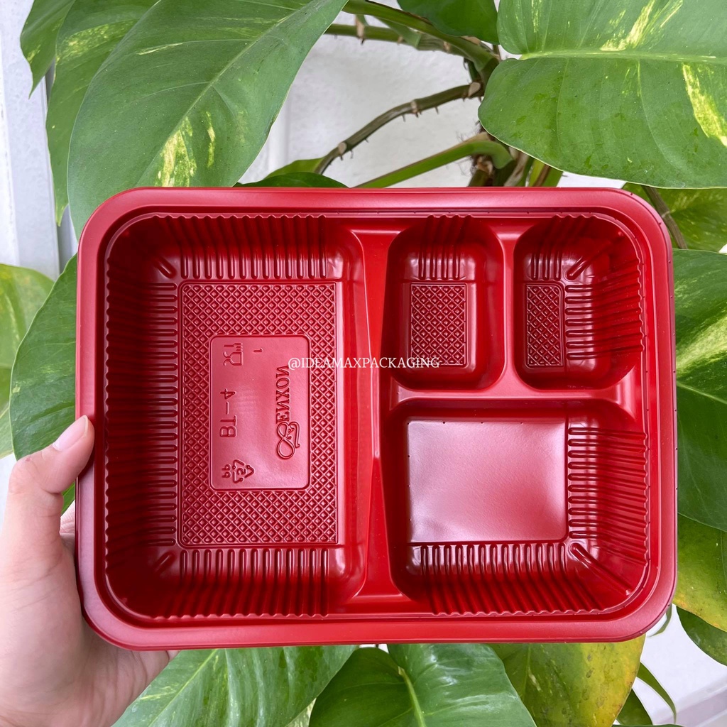 BT-4 4 Compartment Bento Lunch Box with lid (Red inside /black outside)