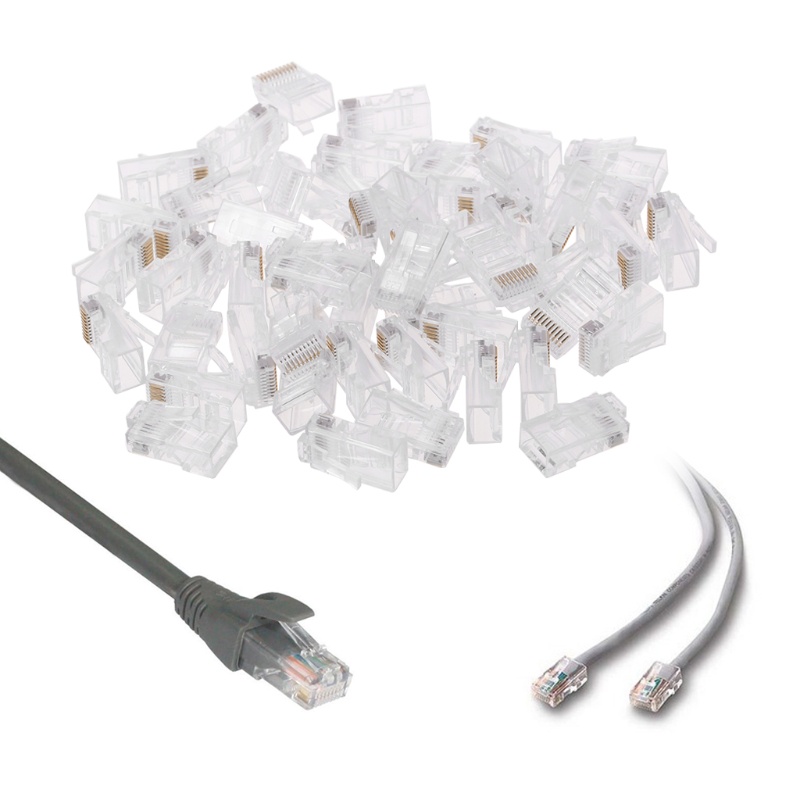 BT 50pcs 10P10C RJ45 RJ48 RJ50 Cat5E UTP Ethernet Connector Modular Crystal Plug 10-Pin Cable Connector
