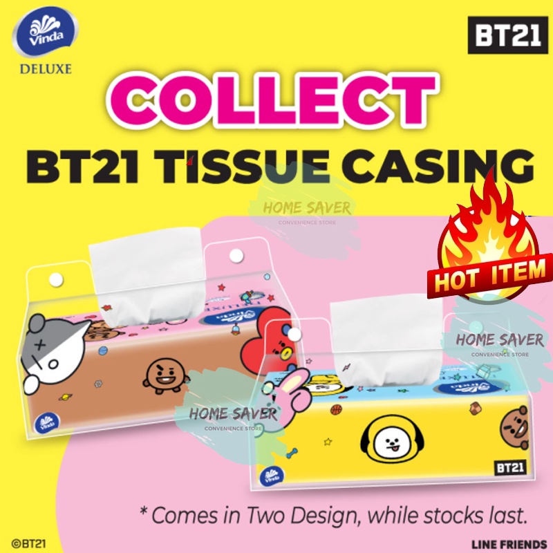 BT21 Tissue Casing Big Size Plastic Tissue Cover Kotak Tisu Transparent Tissue Cover Line Friends