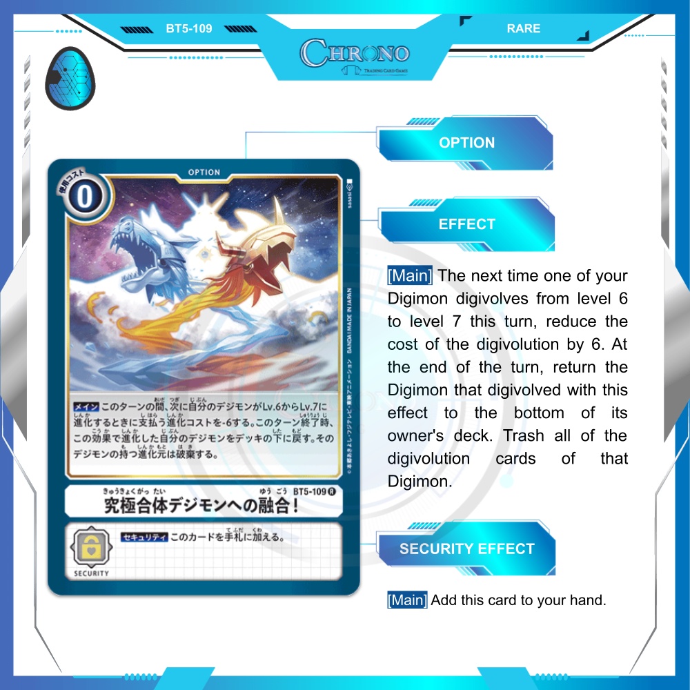 BT5-109 | Fuse Into The Ultimate Digimon! | Rare | Digimon Card Single|Chrono TCG | Battle of Omega | BT5 White | Option