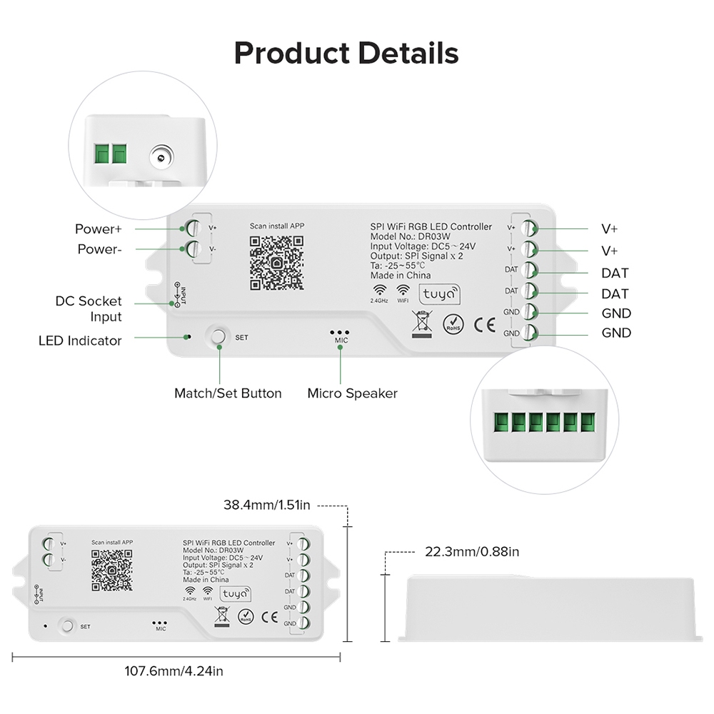 BTF-LIGHTING Tuya WiFi RGB IC LED controller 2.4G RF Remote Control Smart Life APP Amazon alexa Google Assistant