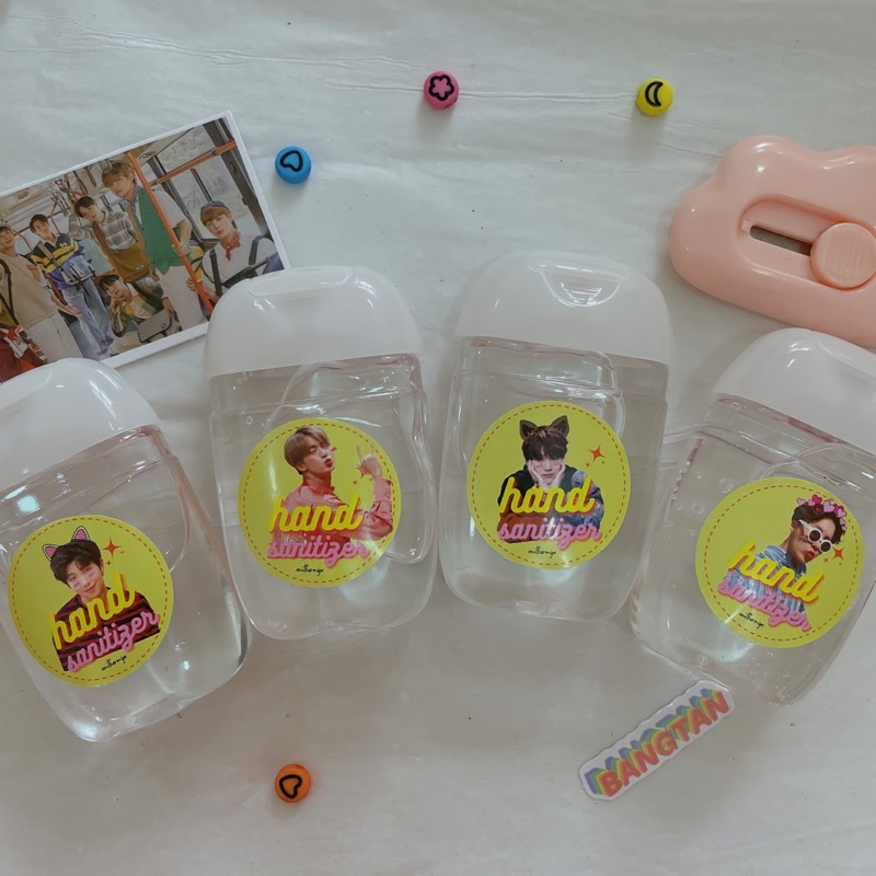 BTS HAND SANITIZER ( WITH BOX, PHOTOCARDS, STICKERS, HAIR BAND )