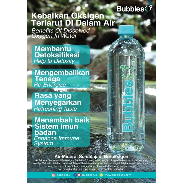 BUBBLES O2 OXYGENATED WATER (800ml x 12 botol) AIR MINERAL SEMULAJADI BEROKSIGEN MURAH VIRAL