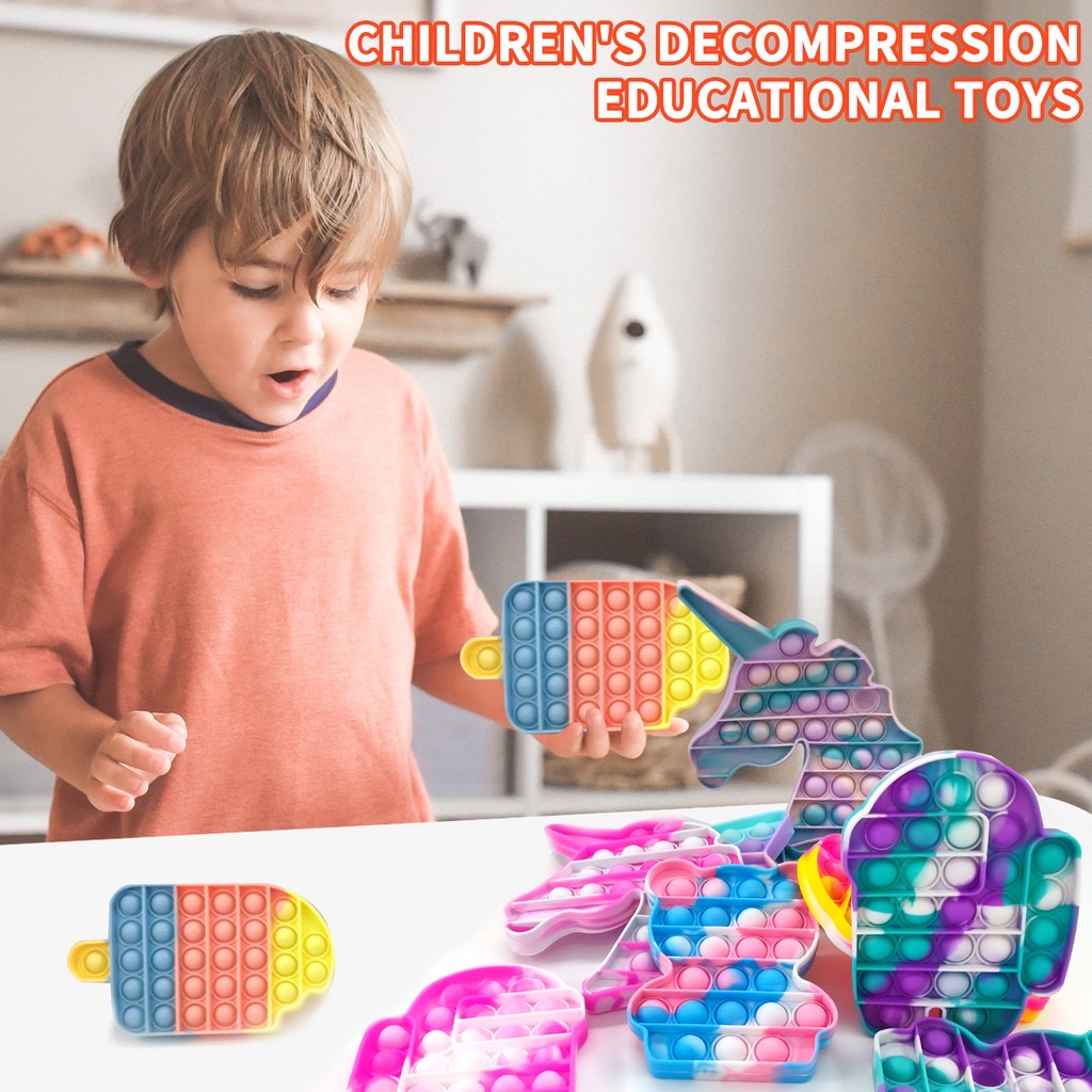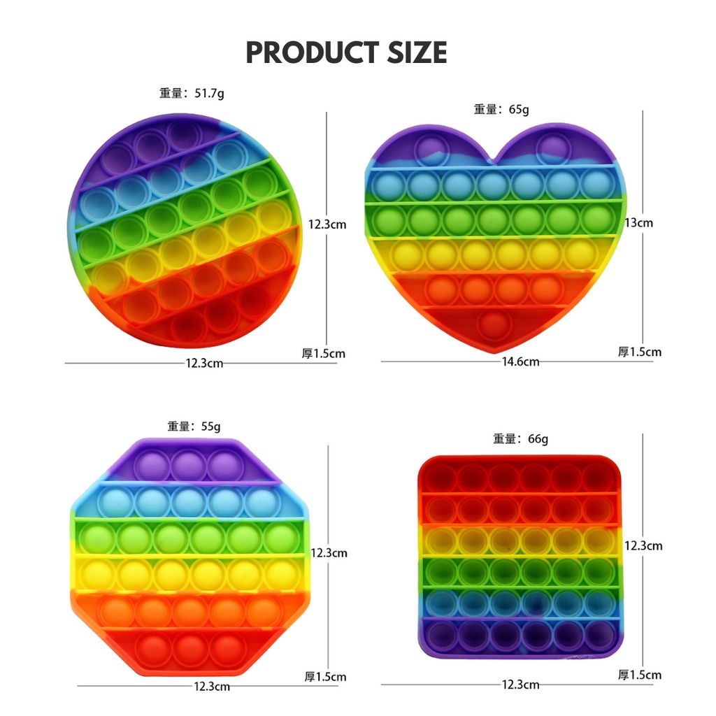 BUBU [Ready Stock] Rainbow Pop It Fidget Toys Push Pop It Bubble Sensory Squishy Stress Toy Reliever Mainan Kanak Autism
