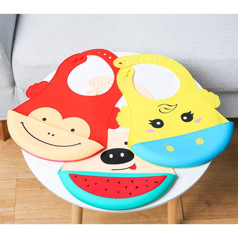 BUBU Ready Stock in Malaysia Baby Silicone Bibs w Wing Adjustable Waterproof Washable Feeding Napkin Bibik Bayi