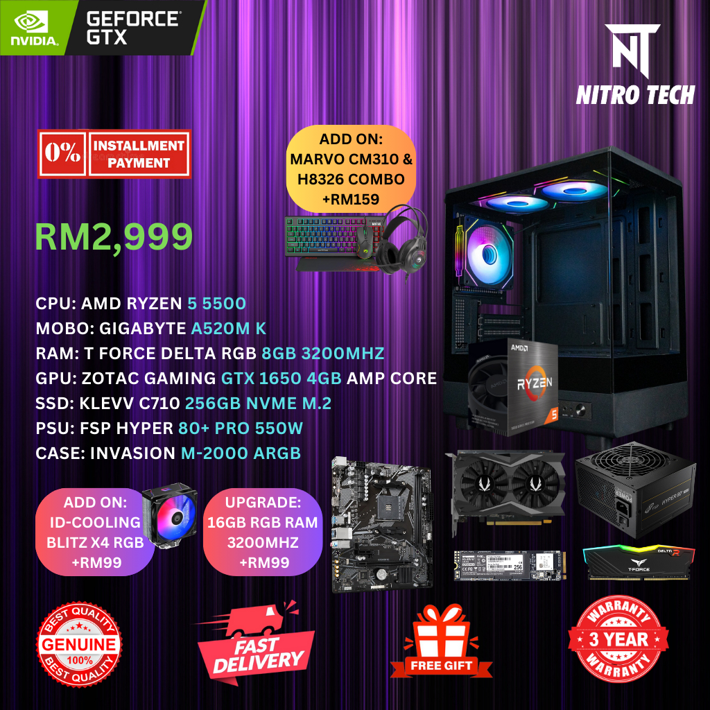 BUDGET GAMING PC PACKAGE INTEL I5 14400F / RYZEN 5 9600X / 7600X + RTX 5070 / RTX5060 Ti / RTX 5060 / RTX 3050 /GTX1650