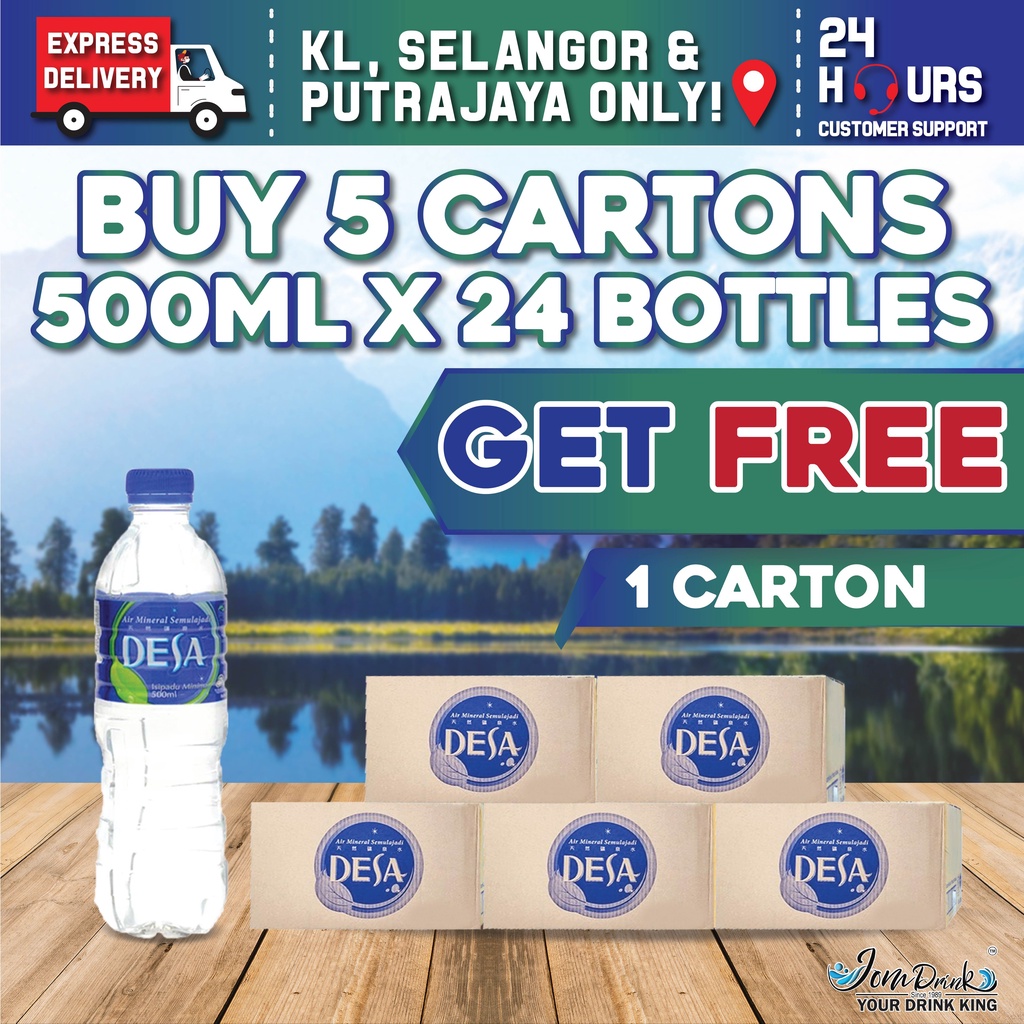 BUNDLE OF 5 CARTONS : DESA MINERAL WATER 500ML x 24 BOTTLES