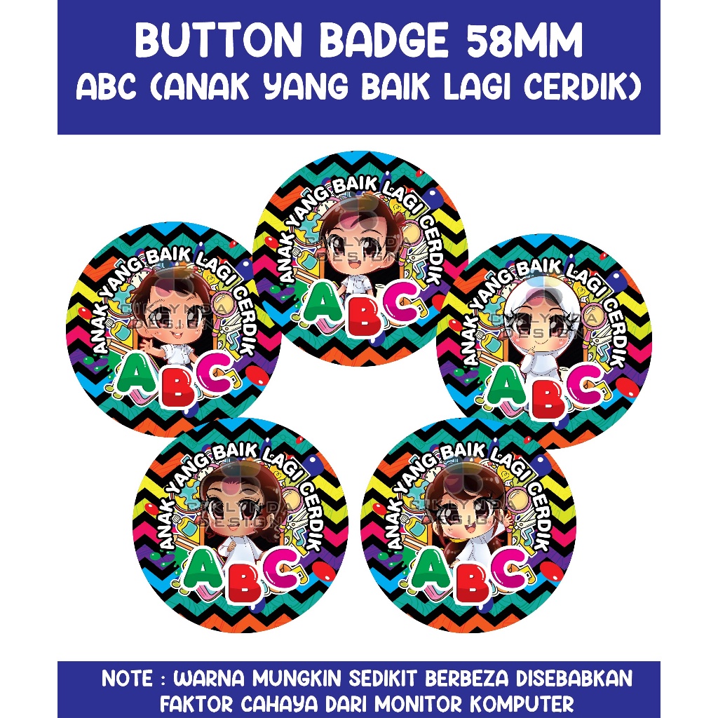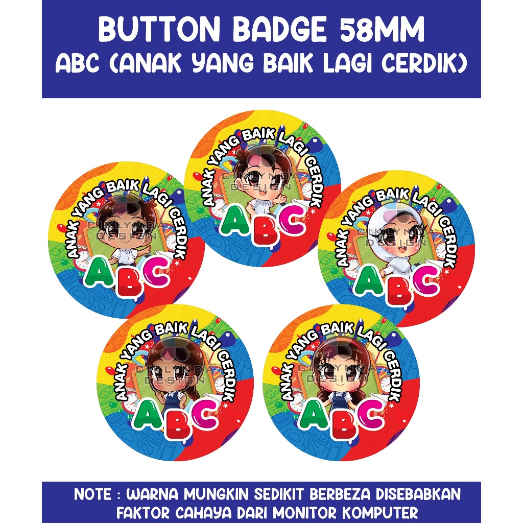 BUTTON BADGE SAFETY PIN - ABC (Anak yang Baik Lagi Cerdik)