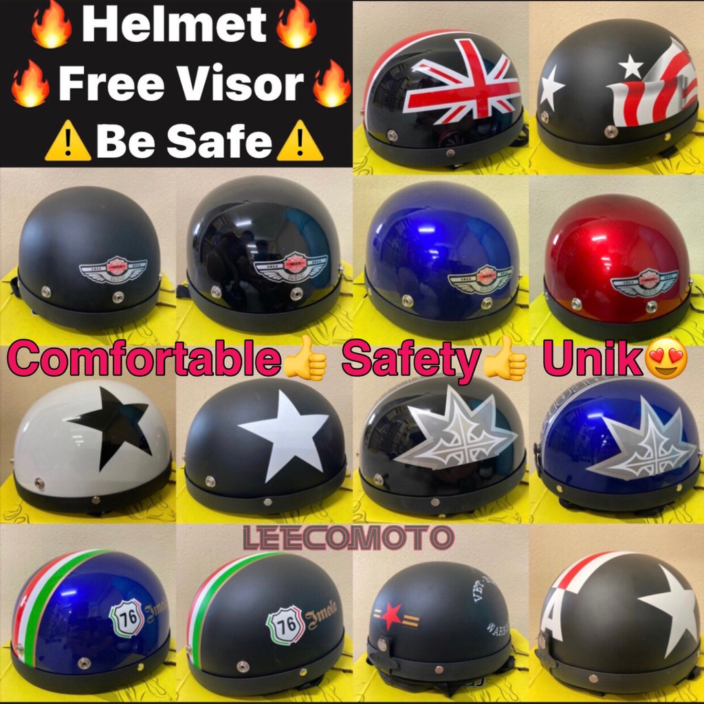 BUY 1 HELMET FREE 1 VISOR MHR III Steng Kura Kura Half Cut Helmet MHR Design Helmet TOPI KELEDAR MHR helmet MHR 3