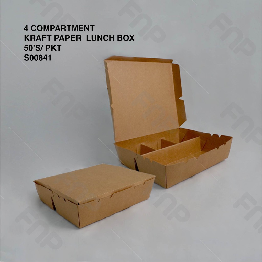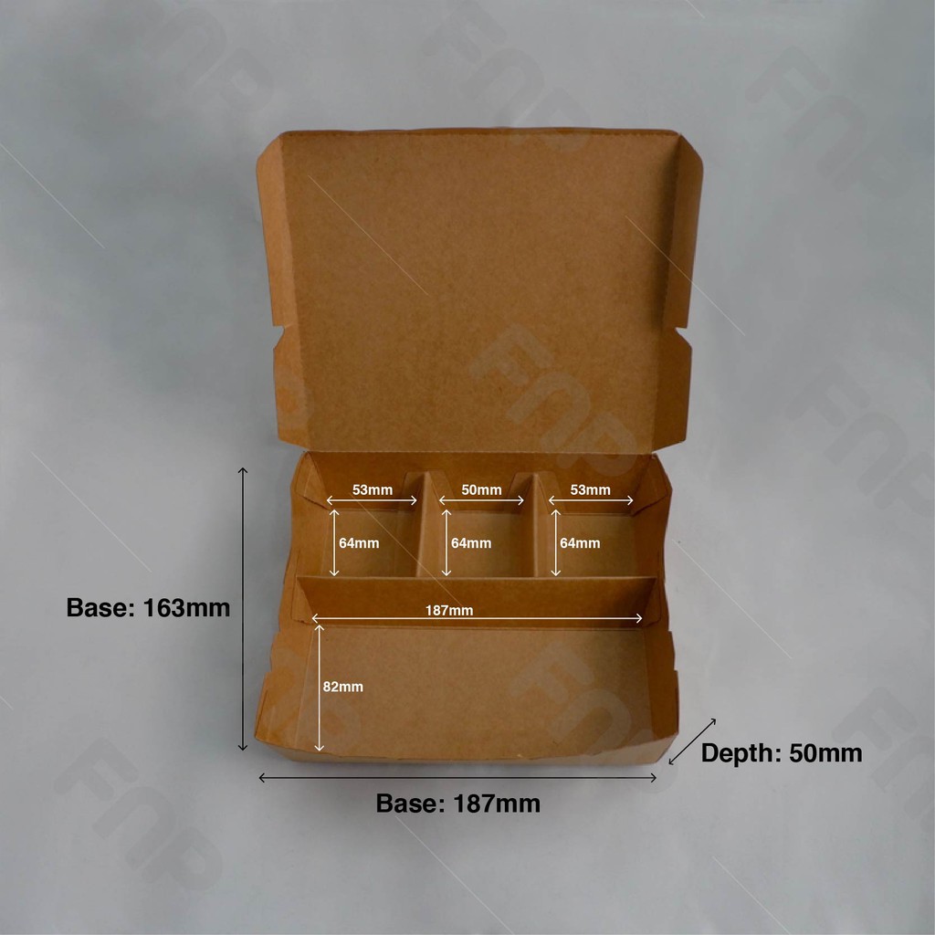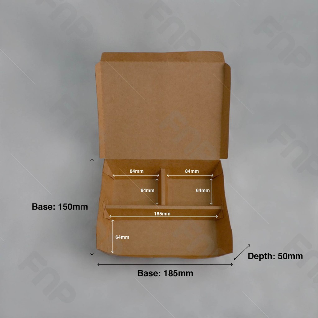 BUY 400pcs FREE PRINTING LOGO 3 OR 4 COMPARTMENT BROWN KRAFT DISPOSABLE PAPER LUNCH BOX/ TAKE AWAY/ BEKAS MAKANAN (50'S)