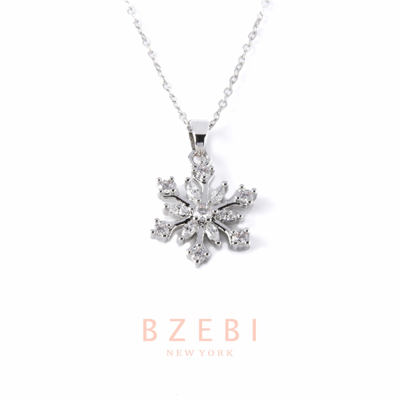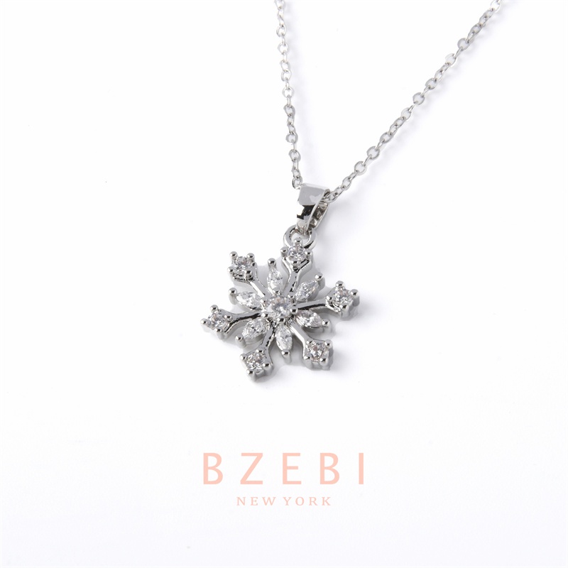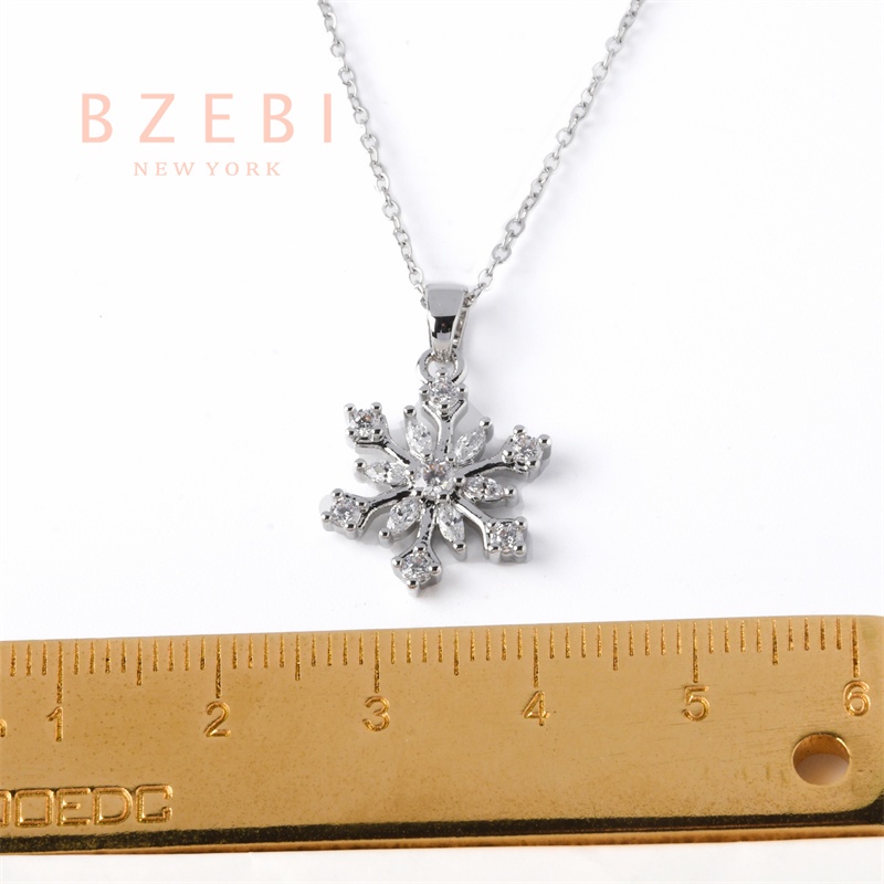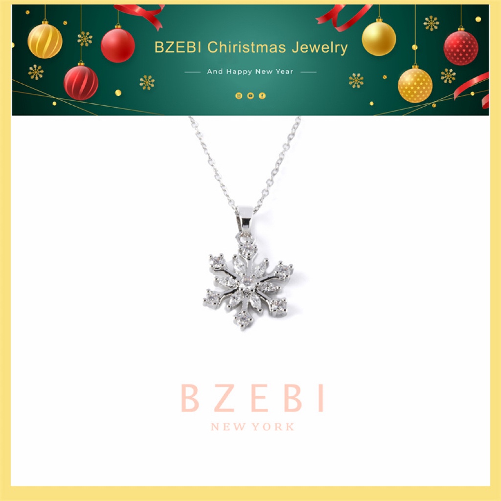BZEBI 18k Platinum Christmas Necklace Shinny Snowflake Pendant Titanium Steel Chain Non-fading Christmas Gift Women's Jewelry Korean Fashion Accessories Birthday Rantai Kalung 707n