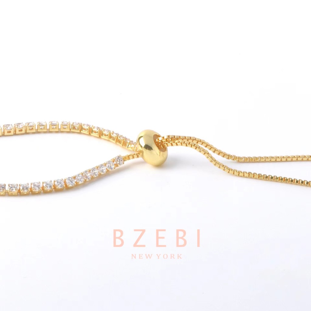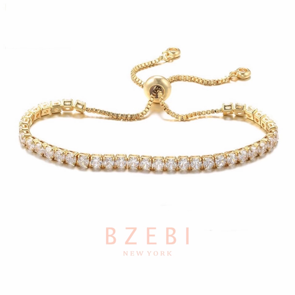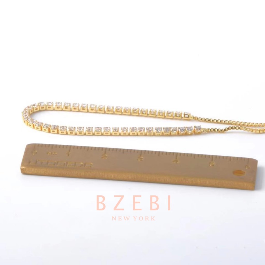 BZEBI Gold Plated Diamond Slider Tennis Bracelet with Box Adjustable 40b