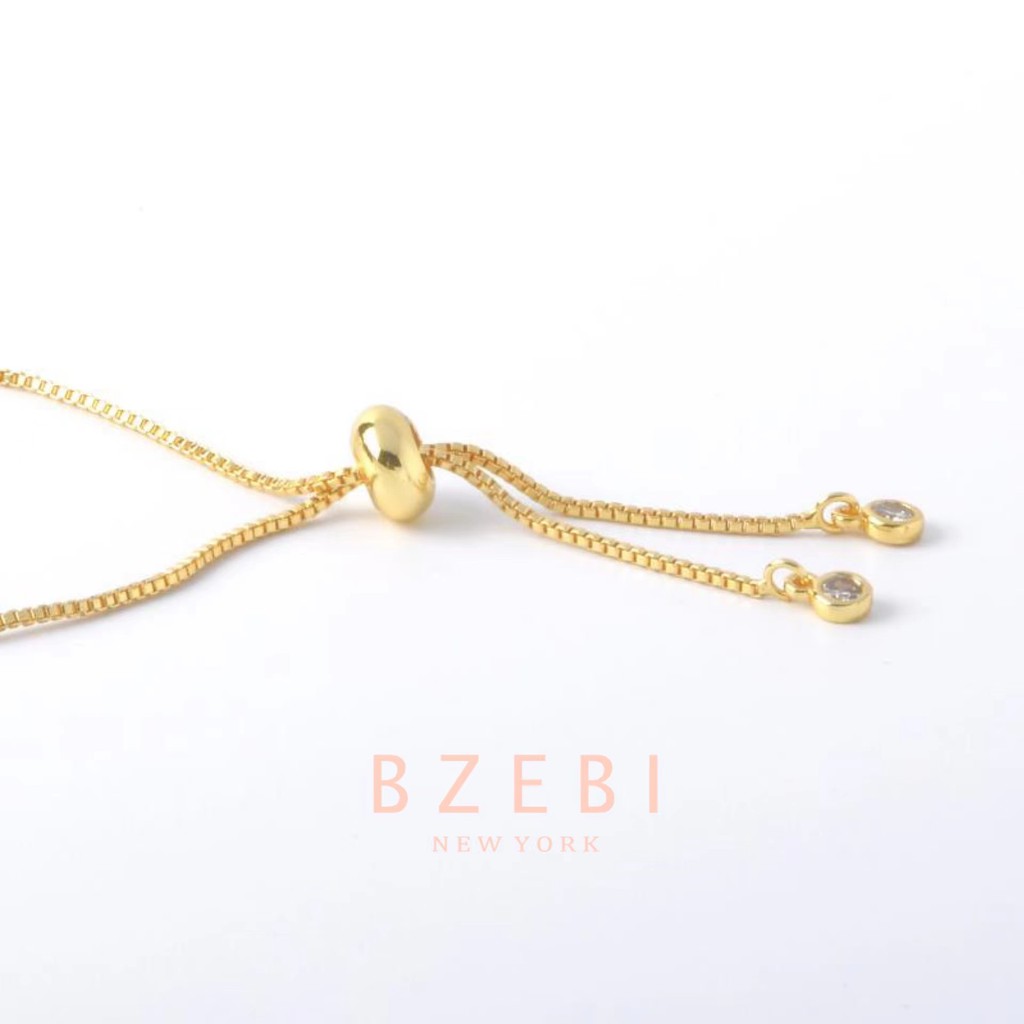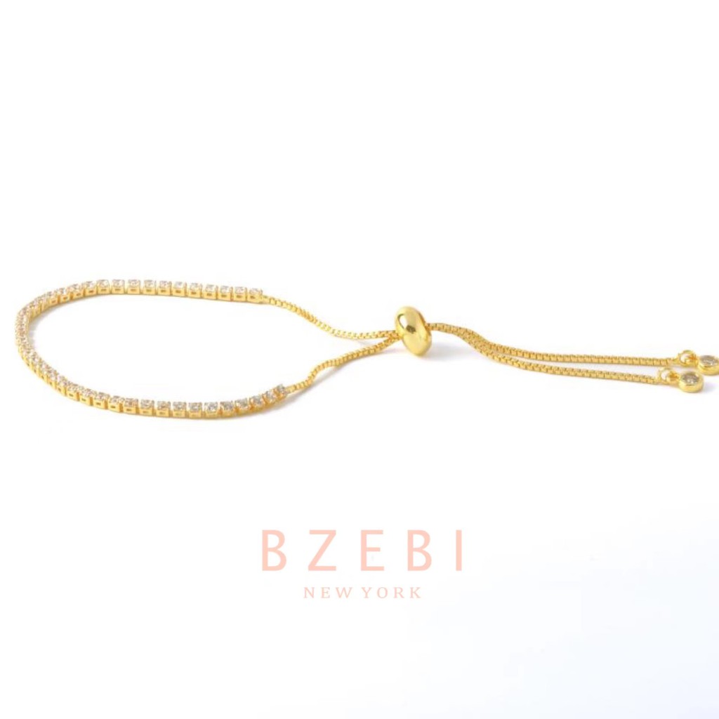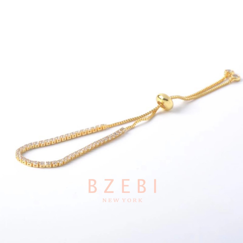 BZEBI Gold Plated Diamond Slider Tennis Bracelet with Box Adjustable 40b