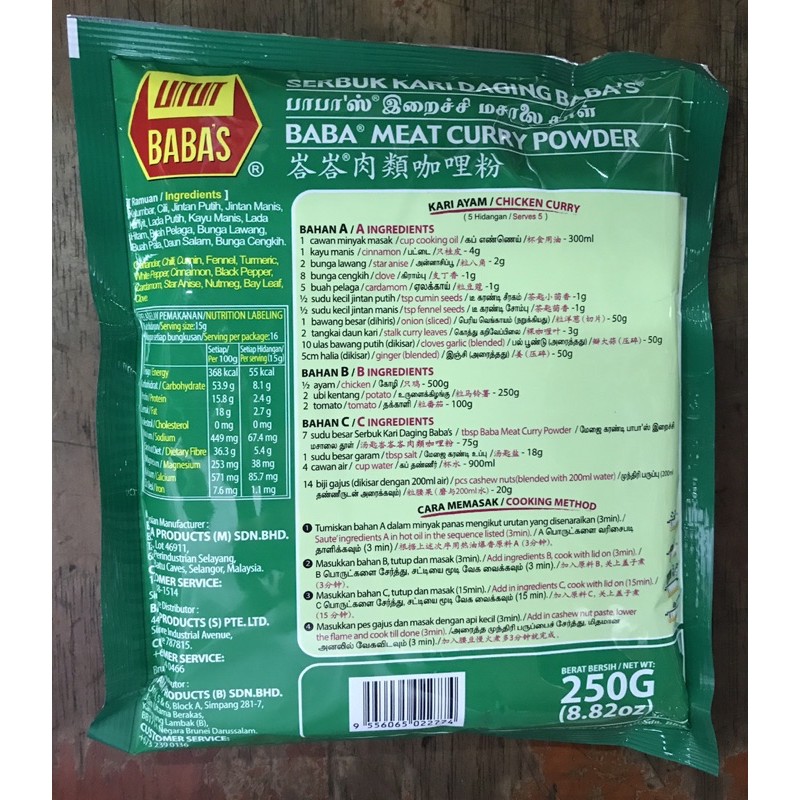 Babas Serbuk Kari Ayam/Daging 250g