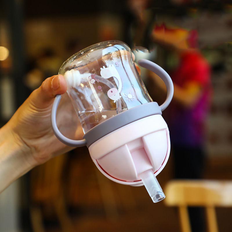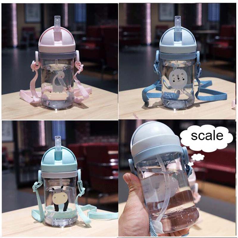 Baby Drinking Bottle Child Learn Water Milk Cup with Gravity Ball Straw Handle & Strap Bottle 250ml & 350ml