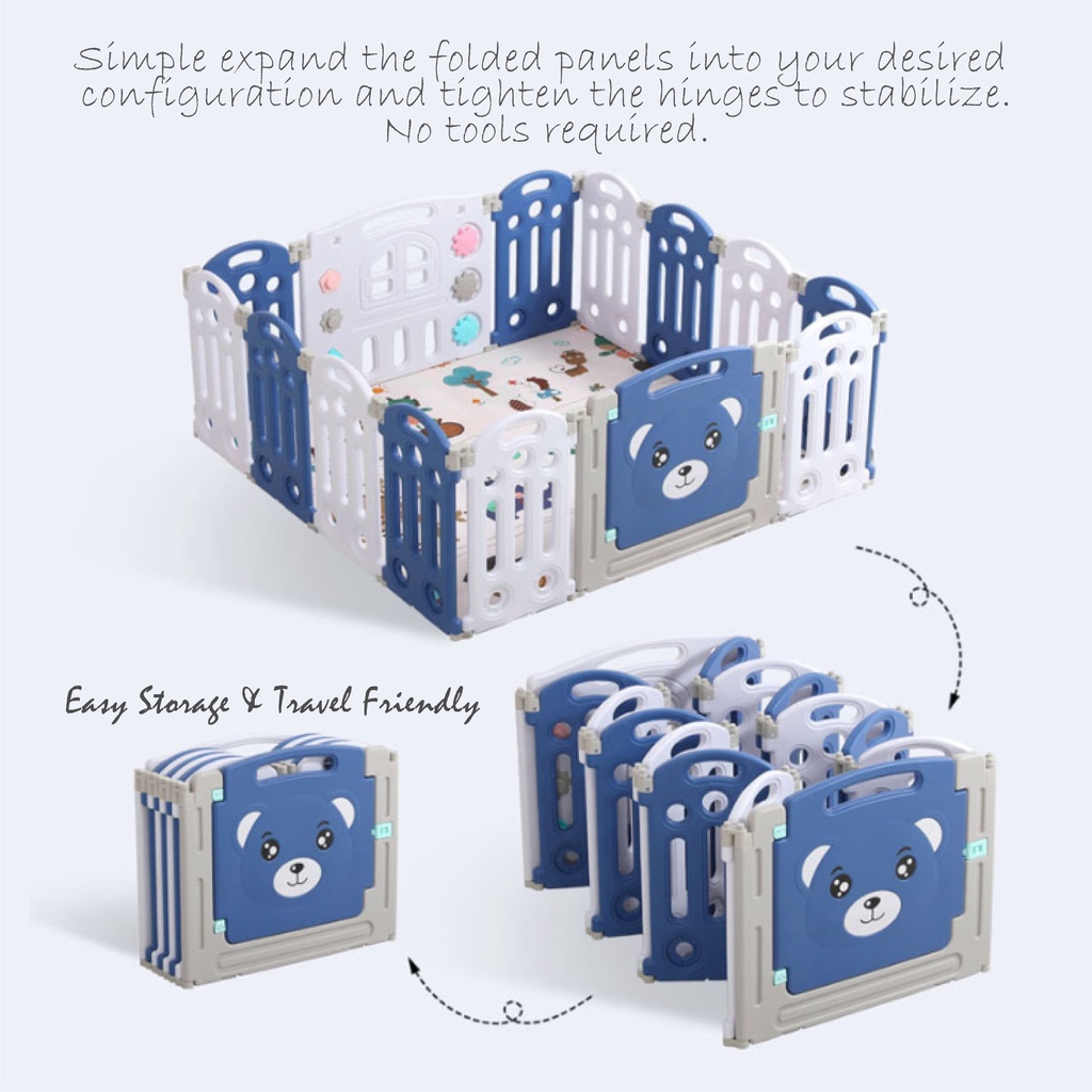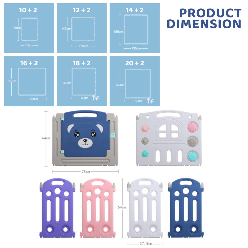Baby Fence with Door Gate (10/12/14/16/18/20 Panel) Safety Foldable Baby Playpen Baby Kid Safety Play Fence