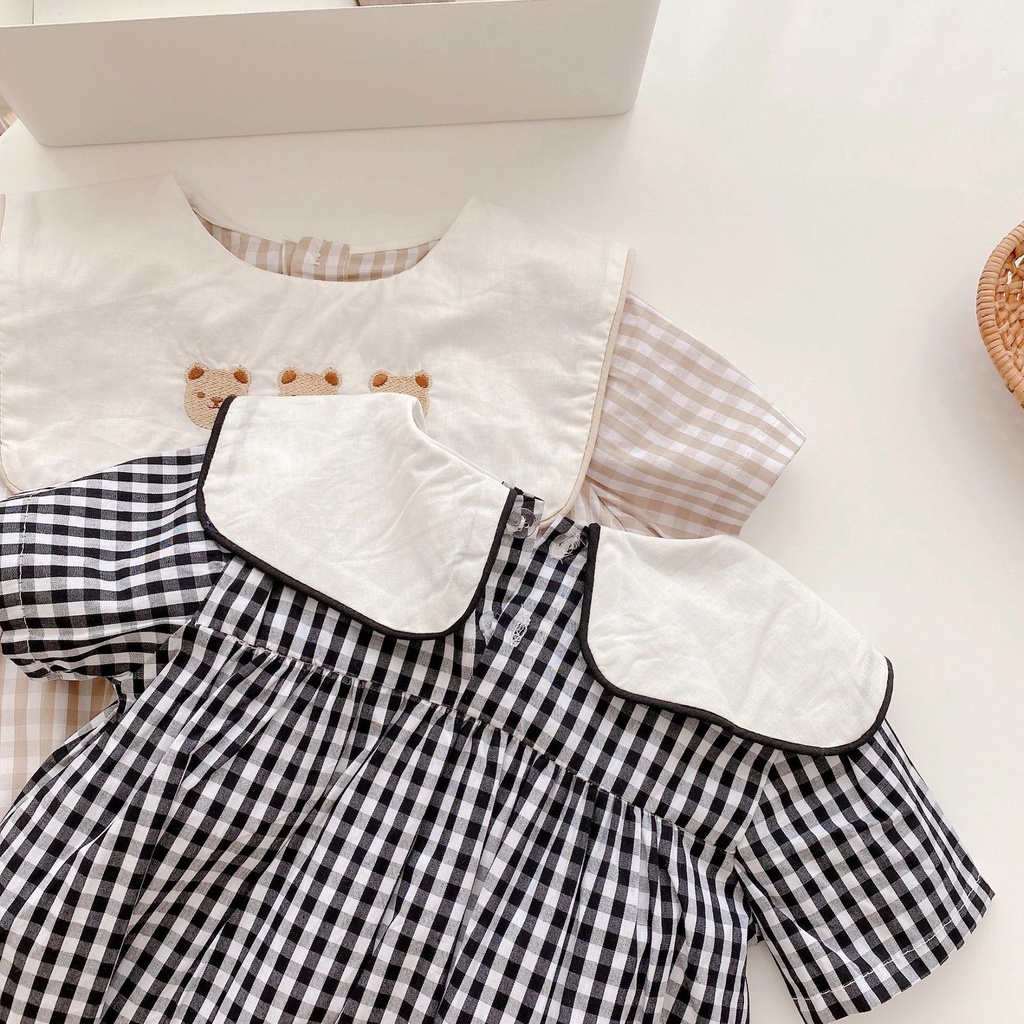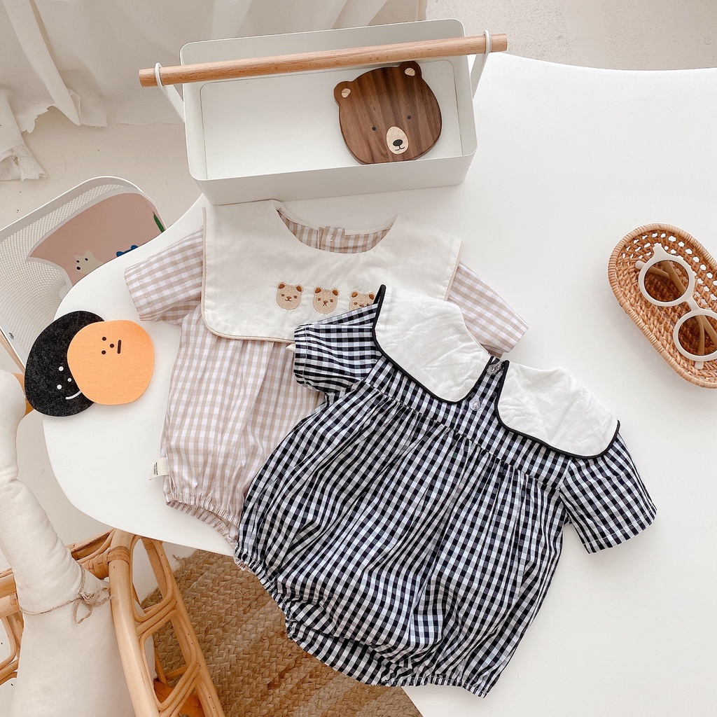 Baby Girl Plaid Onesies Newborn Baby Cute Large Lapel Cotton Romper Infants Clothes Summer 0-2 Years Old