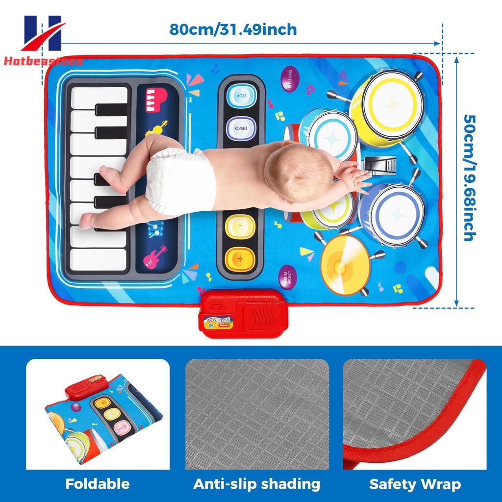 Baby Musical Mat 2 in 1 Keyboard and Drum Mat with 2 Sticks Educational Musical Toy Waterproof Anti-Skid Musical Play Mat for 1 Year Old Kids SHOPSKC8440