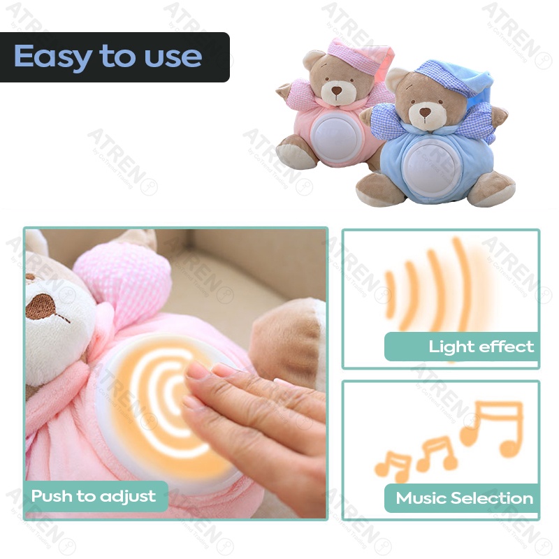 Baby Sleeping Music Bear Toy Newborn Night Lamp Comfort Lullaby Soft Song Baby Soothing Light Lampu Muzik Bayi Baby Gift