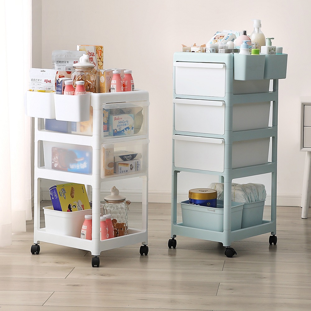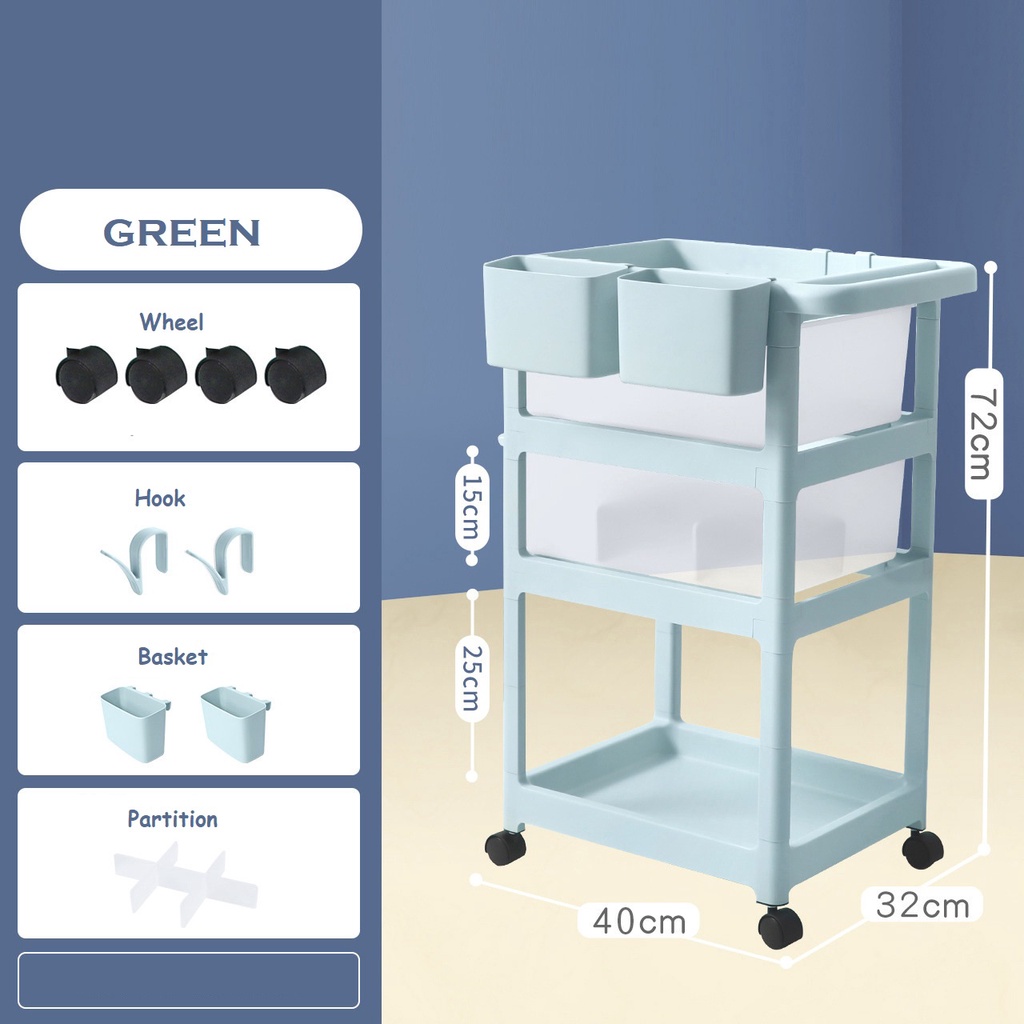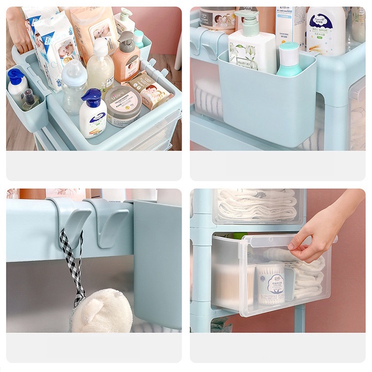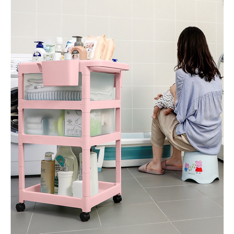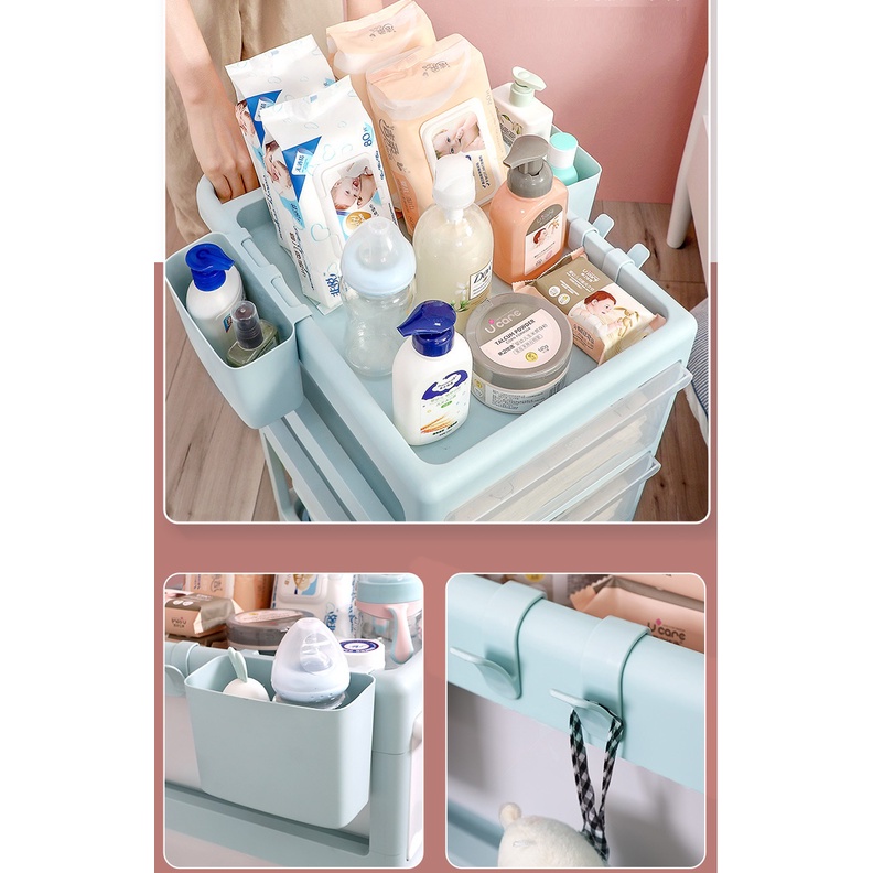Baby Storage Rack 3 Tier Layer Multipurpose Storage Trolley Anti Dust Compartment Rak Troli Bayi Penyimpanan