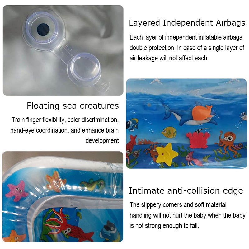 Baby Water Play Mat Infant Cartoon PlayMat Fun Activity Inflatable Cushion Baby Water Play Pad Patted Mat Toddler Toy