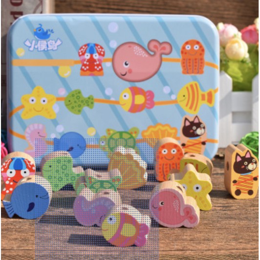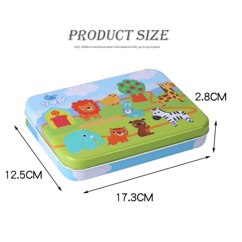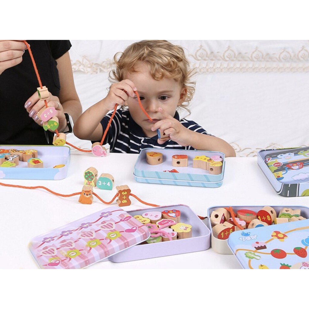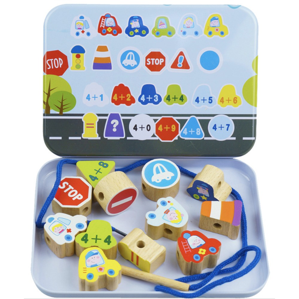 Baby Wooden Beads String with Metal Box Threading Toy Lacing Beads String Beads Toy Early Learning Montessori Toy