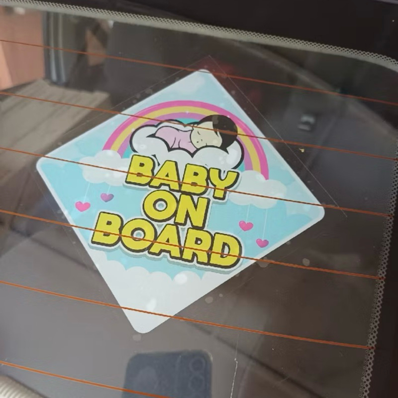 Stiker Static Cling Logo Baby On Board Pelekat Kereta Cermin 100mm x 100mm Tahan Air Stiker Keselamatan Kanak-kanak