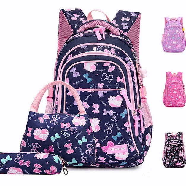 Backpack ForTeenGirls 3PCs SetBlack Purple Blue School Bags for Teenage Girls Water RepellentFabric Student Schoolbag, Book Storage, School Supplies, School Stationery, School Stationery, Storage and Sorting, Student Gifts, School Prizes