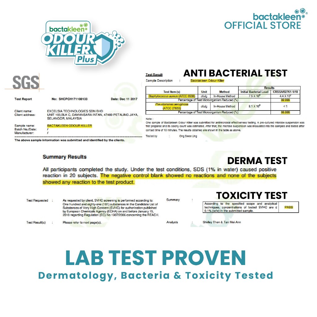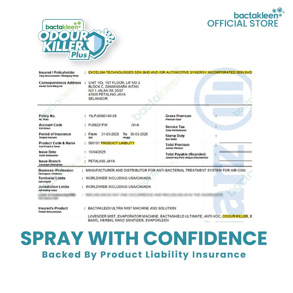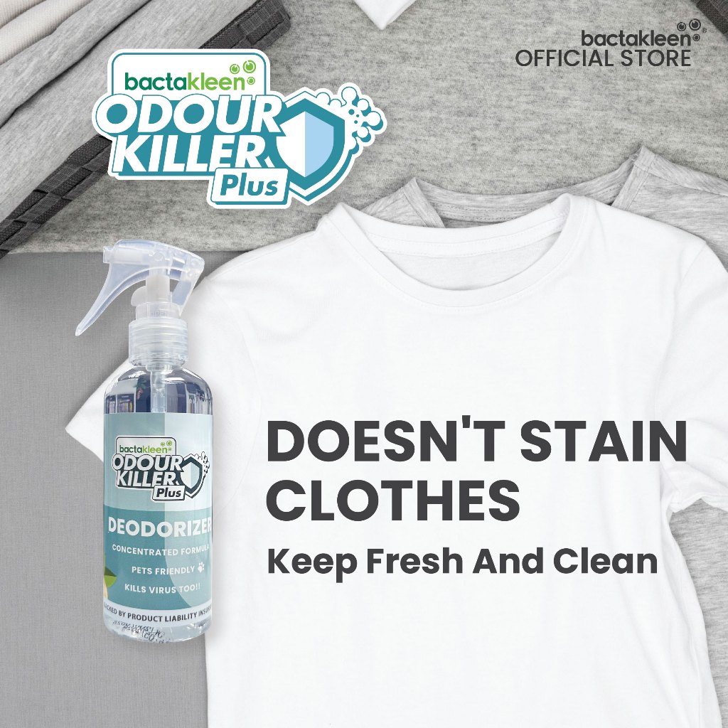 Bactakleen Odour Killer Plus 200ml | Nano Air Freshener Spray | Remove Smoke, Pet, Durian & Car Odours