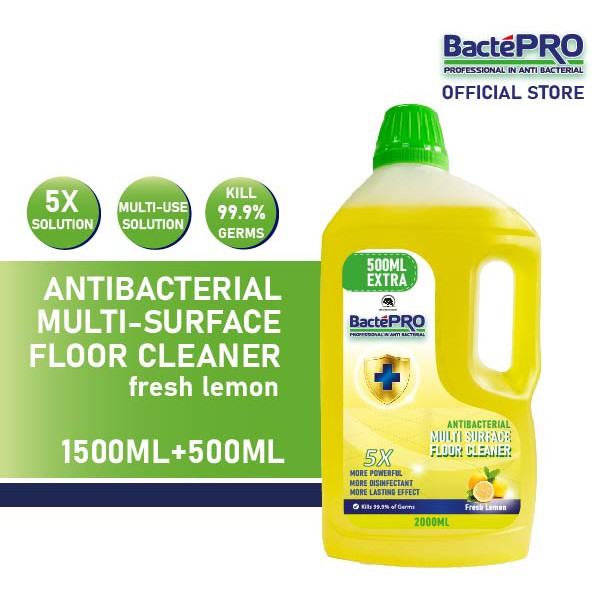 BactePRO Antibacterial Multi Surface Floor Cleaner - Fresh Lemon 1500ML Free 500ML Surface Cleaner