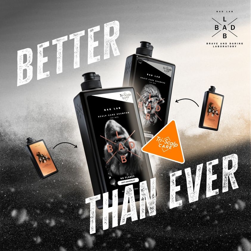 Bad Lab Scalp Care Shampoo 350ml / 3-In-1 Hair, Face, Body Cleaner / Body Wash 400ml