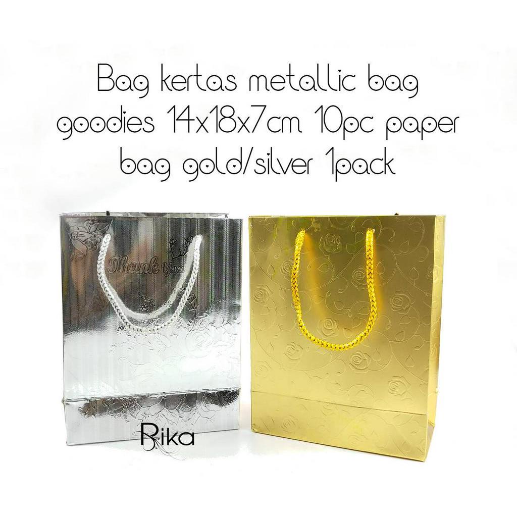 Bag kertas metallic bag goodies 14x18x7cm 10pc paper bag gold/silver 1pack