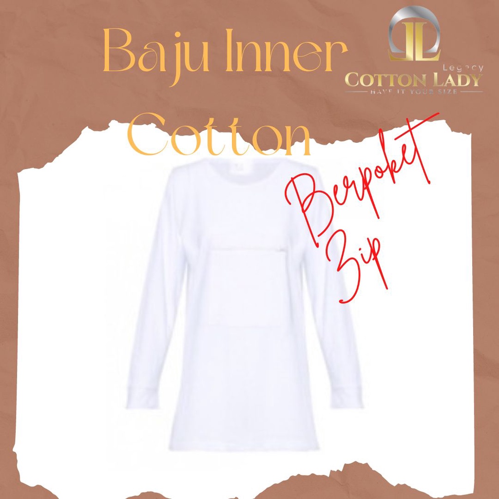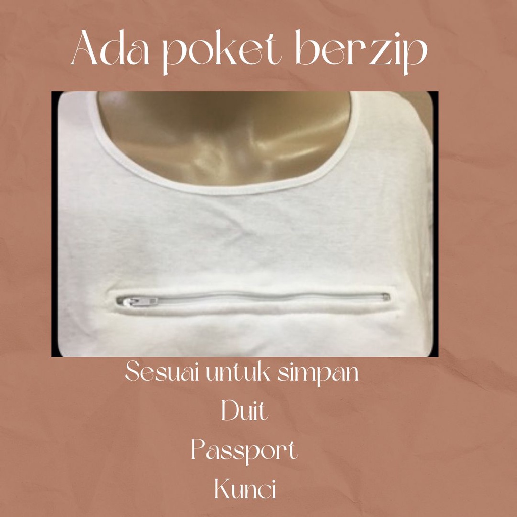 Baju Inner Haji Umrah Berpoket Zip Lengan Panjang Cotton Hitam Putih Saiz S - 4XL