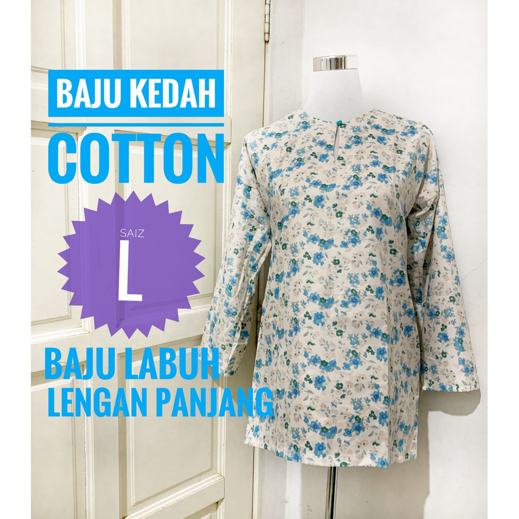 Baju Kedah LABUH Tangan Panjang (L) - Baju Kurung Kedah - Baju Opah - Kain Batik Sarung Sarong - Ready Stock - t